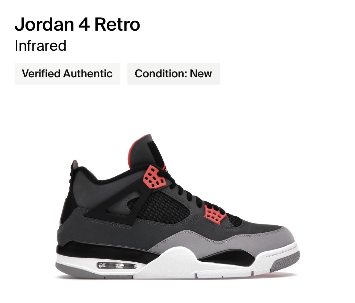Jordan 4 Infrared Size 12 DS DS with receipts Purchased from SNKRS Asking $270