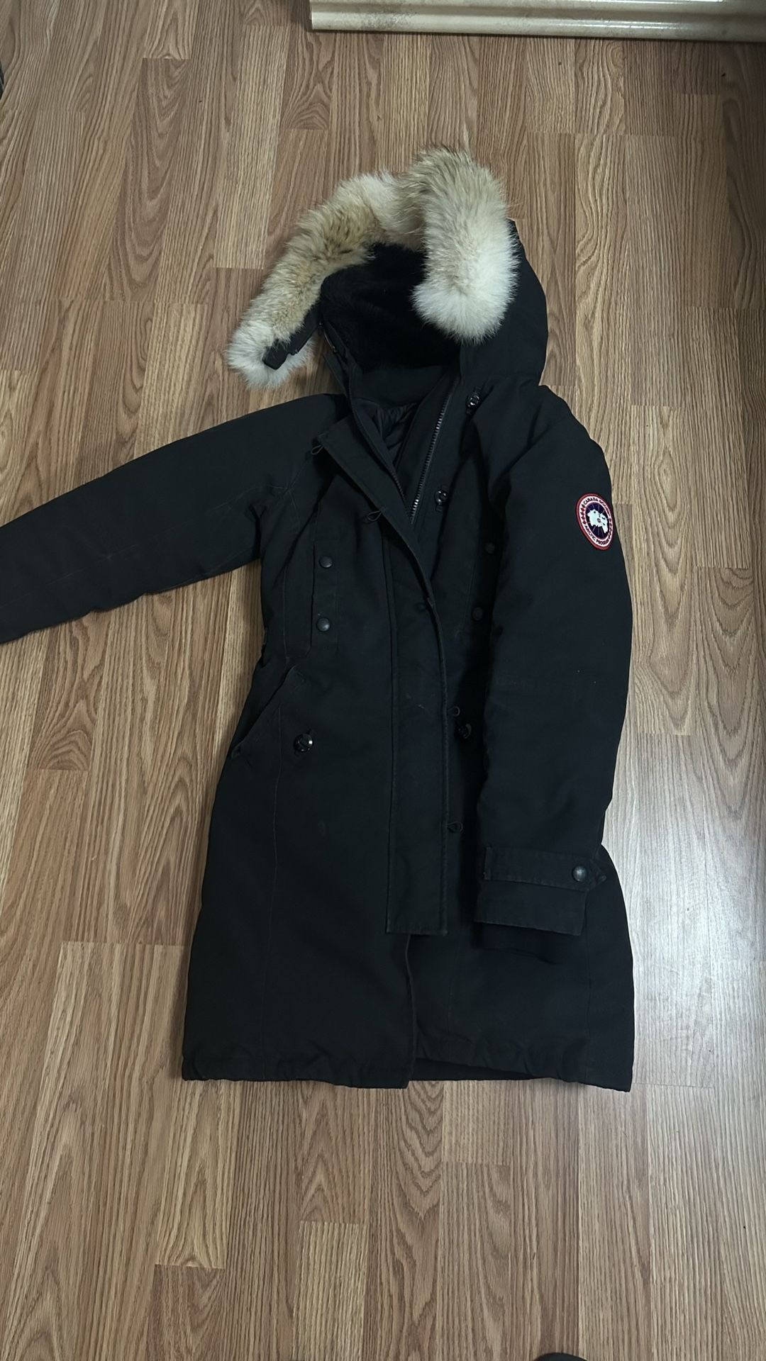 Great jacket for the winter, very warm. Size XS but fits a lot bigger . In perfect condition zero rips or scratches . Selling because I want a different color I have too many black jackets . Lightly worn I’ve had it for one season . Serious buyers only pls . Thank you