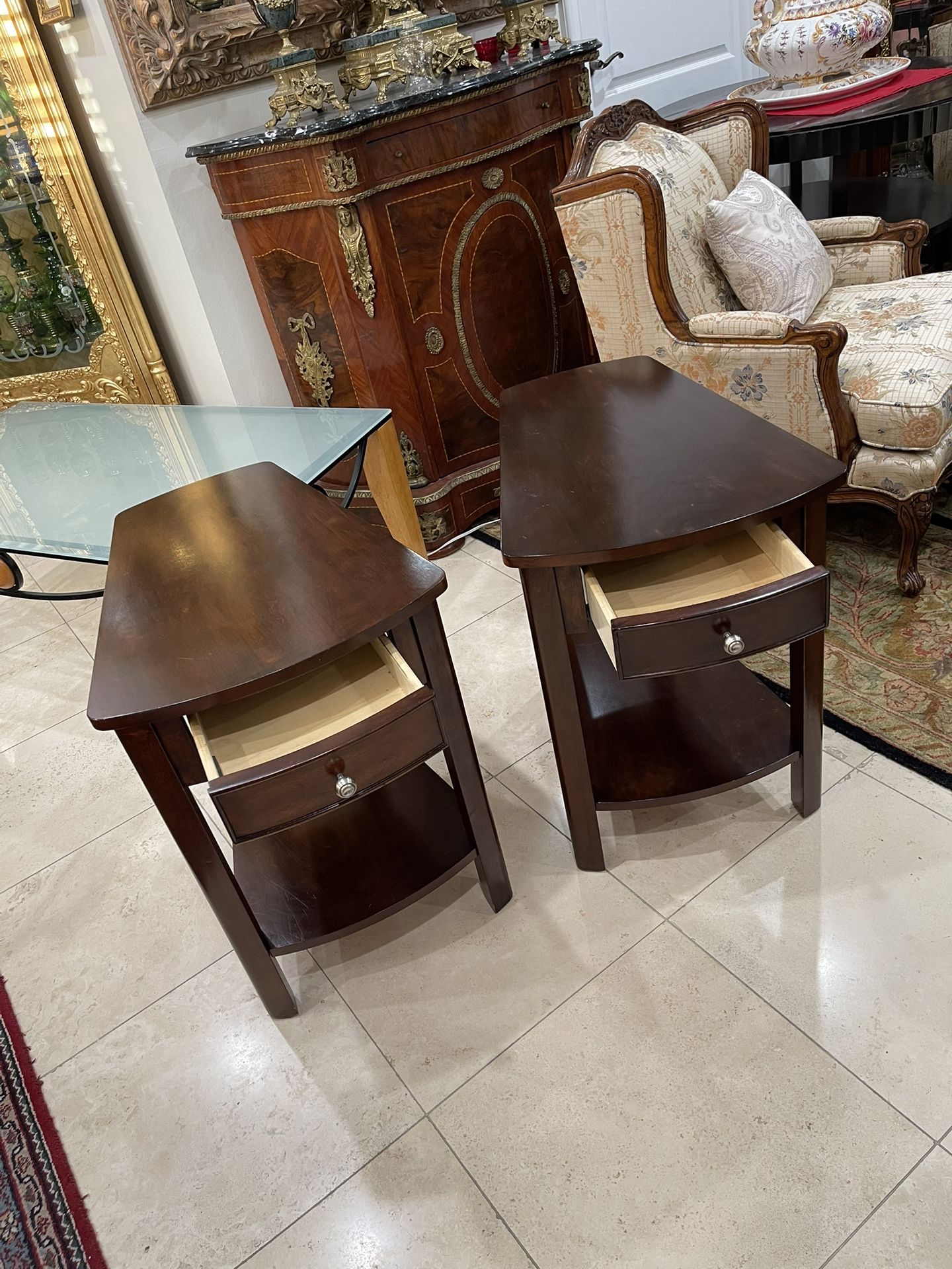 $200 EACH Both Tables will be sold together. Pair of Beautiful Mid Century Bassett Side Tables. One Side with pull out drawer and one side with pull out tea board. In Great Vintage Condition. 26”w. 18”d. 26”h. Pick up Tarzana