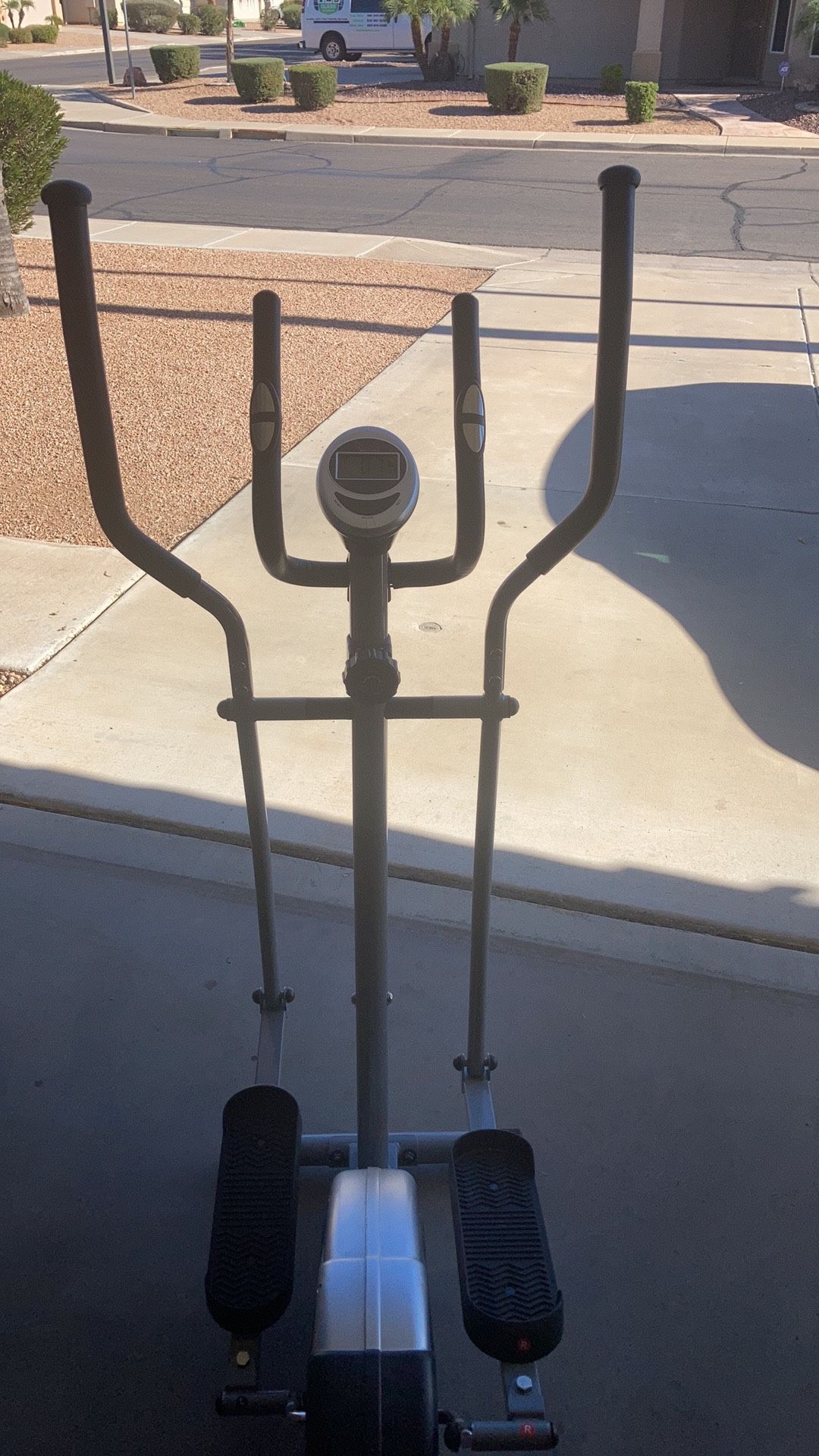 Cash only. No shipping, local pickup in Gilbert only. Gently used. This Sunny Health and Fitness Elliptical Bike offers a powerful and resistant workout to help you burn calories quicker and more efficiently. The hand pulse monitoring system on this Sunny magnetic elliptical trainer allows you to monitor your heart rate so you can be aware of your progress. This elliptical bike is equipped with an eight-level tension controller so you can customize the difficulty of your workouts, and the large anti-slip platforms provide added stability and safety. A digital monitor displays your time, speed, distance, calories, and pulse so that your workouts are easily tracked for the best result. This Elliptical Bike is a must-have for people who want an at-home workout solution but have limited space. Elliptical trainer with large anti-slip foot platforms and moving arms Large anti-slip foot platforms for secure footing Smooth magnetic resistance with a precise micro-tension controller Hand pulse monitoring system provides heart rate readouts LCD monitor: scan, time, speed, distance, calories, pulse Max user weight: 220 lbs We aim to show you accurate product information. Manufacturers, suppliers and others provide what you see here, and we have not verified it. See our disclaimer Specifications Brand Sunny Health & Fitness Fitness Goal Lose Weight, Healthy Lifestyle, Fitness Manufacturer Part Number SF-E905 Maximum Weight 220 lb Model SF-E905 Assembled Product Weight 60.8 lb Manufacturer Sunny Health & Fitness Color Silver Assembled Product Dimensions (L x W x H) 28.00 x 17.00 x 57.00 Inches Exercise, elliptical, bike, recumbent bike, workout, equipment, gym, cardio