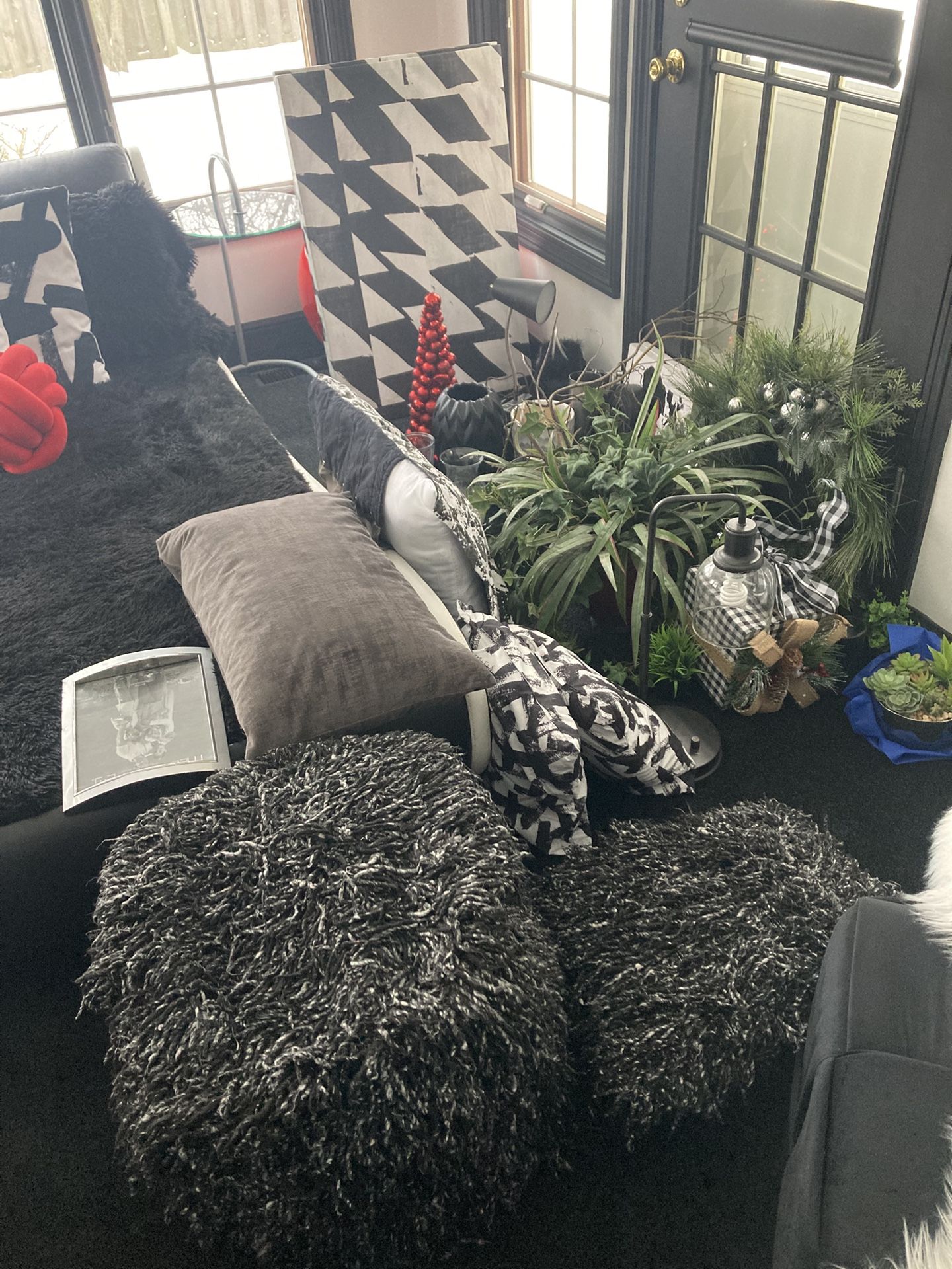 Designers Sale/Modern/Contemporary/Pictures/Vases/Plants/Ottoman/Puff/Black/White. Willowick.