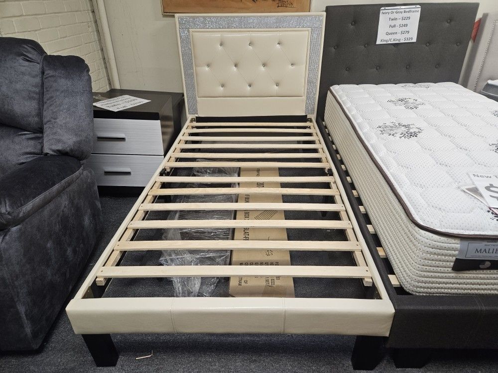 Brand New Cream Faux Leather Twin Platform Bedframe
