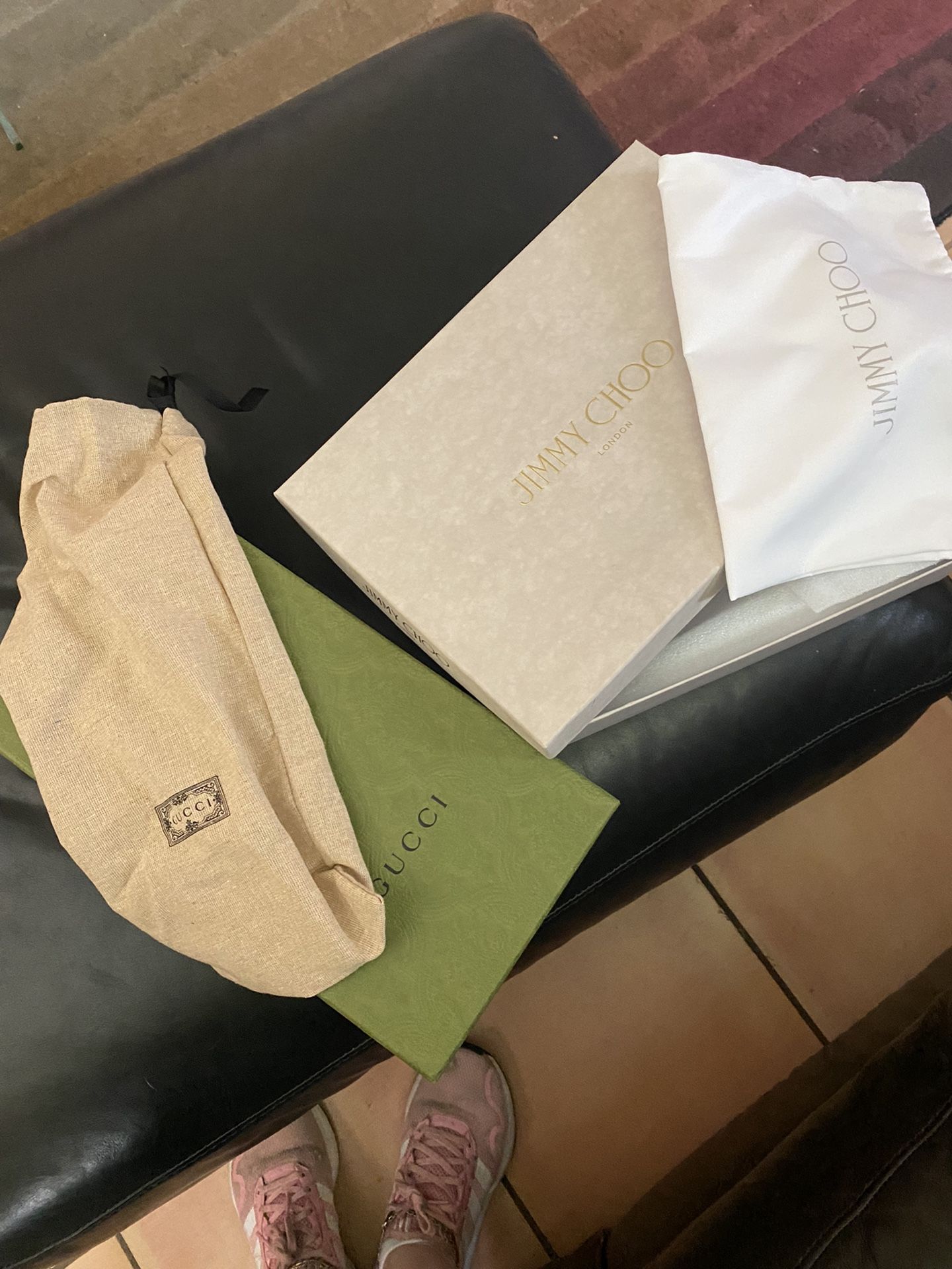 GG and Jimmy Choo shoe boxes with dust bags. $25