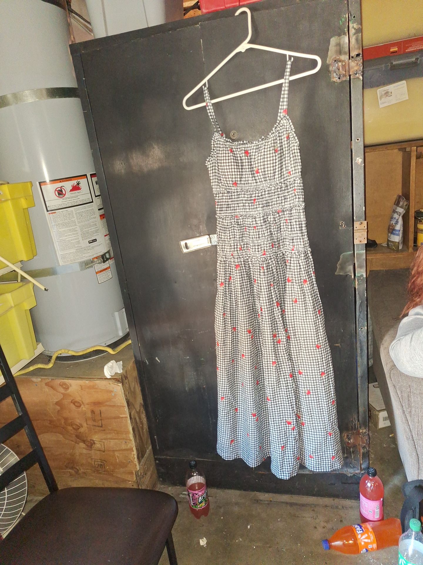Size XS black and white checked with strawberry designs all over brand new never worn. Paid $130 for it only asking for half or might even do less