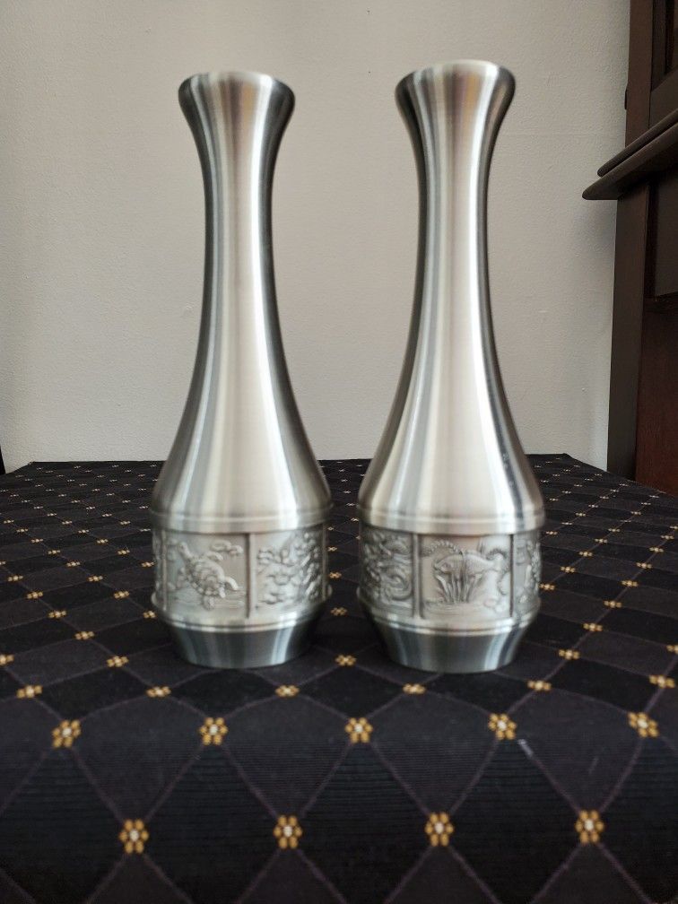 Pewter Vases Natures Engraved X 2