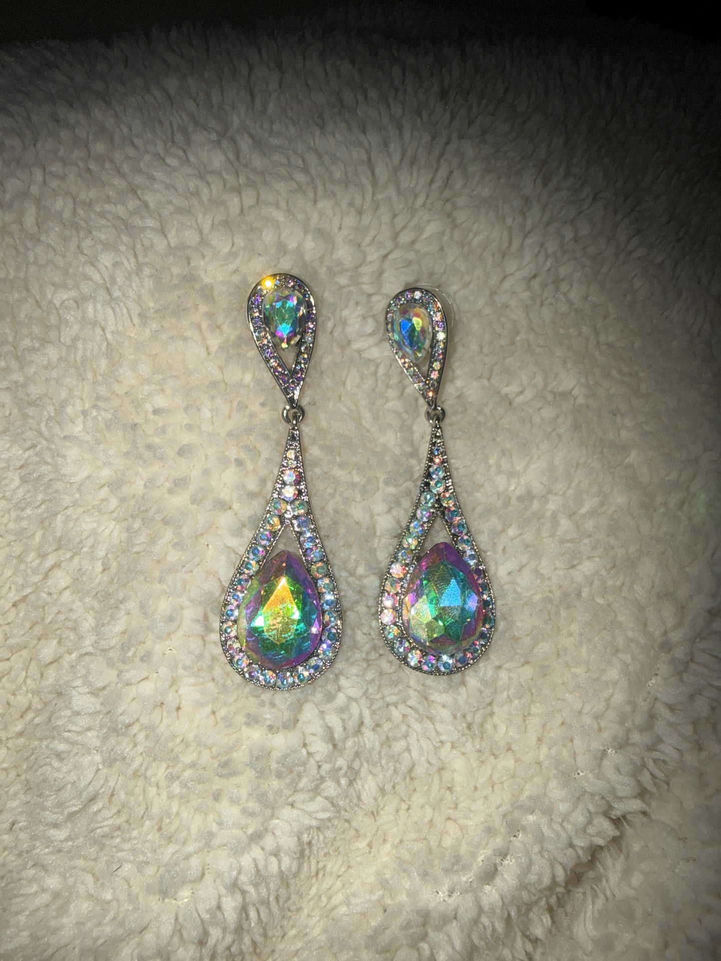Iridescent Teardrop Earrings with large teardrop-shaped clear rhinestones NEW