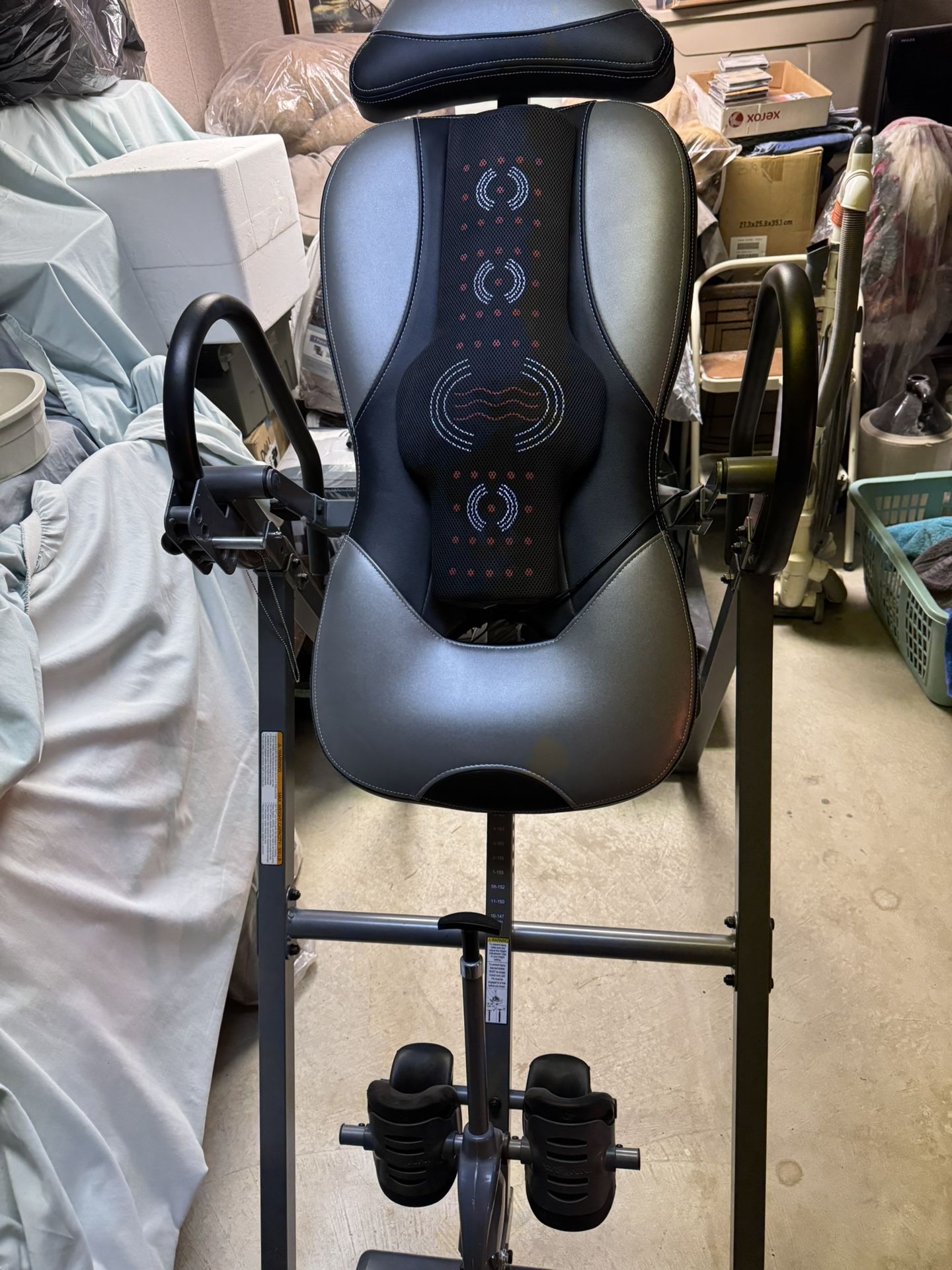 Inversion chair in good condition. Just don’t use it. Has vibrating lumbar attachment. $65