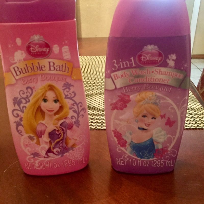 Disney bubble bath and 3 in 1 shampoo, conditioner and body wash used half way 2 for 1.00