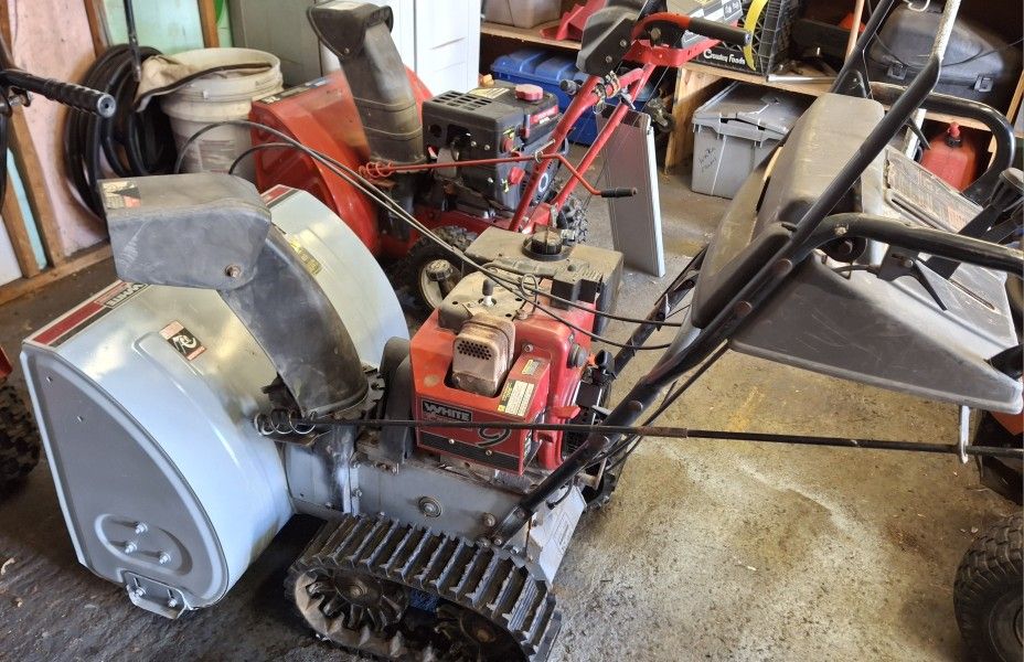 White Tracs Snow Boss - 2 stage, 10hp, 28" clearing width, Electric and pull start. Power steering, new carburetor, new auger belts, new recoil, new plug, fresh oil. Runs well, throws great. No holds. Pickup in Enola. Listed on others sites.