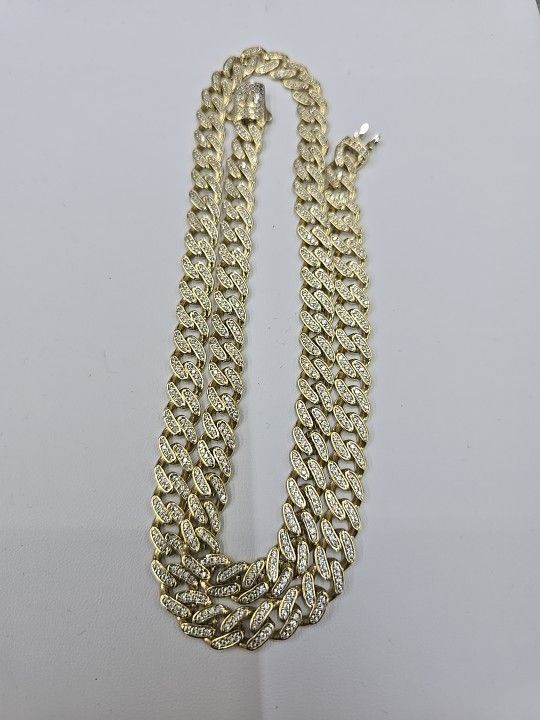 14k Gold Pave Chain Moissanite Stone REAL GOLD!!