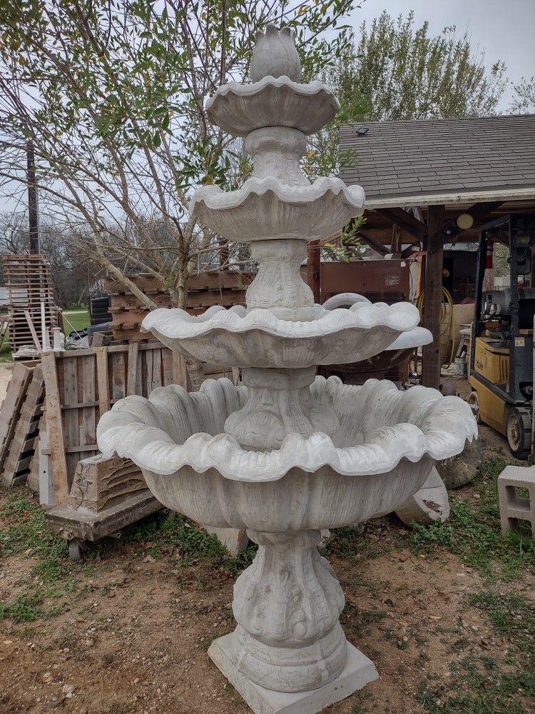 Measures 8 ft tall. Made of concrete. Makes soothing waterfall sound. Delivery available pools, ponds, statuary, concrete art, birdbaths, pottery, vases, landscaping, lighting, tables, benches, appliances, decor, patio, pavers, river rock, flagstone, cement, stone, st francis, mary, guadalupe tables benches, patio furniture, arcadia, campaña, cottage, international,faith, family,remembrance