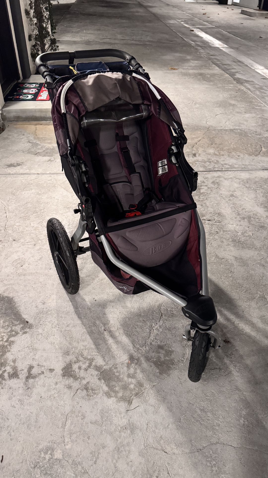 Versatile, all-terrain stroller designed for active parents. Features a swiveling front wheel for easy maneuverability that can also be locked for stability while jogging. Equipped with a state-of-the-art suspension system and air-filled tires for a smooth ride on various terrains. Includes an ultra-padded, reclining seat with a five-point safety harness for child comfort and security. Designed with an easy, two-step folding mechanism for convenient storage and transport. Features a large UPF 50+ canopy for sun protection and multiple storage pocket. Used only a handful of times and no longer needed. It’s in excellent condition. Retails at $599.