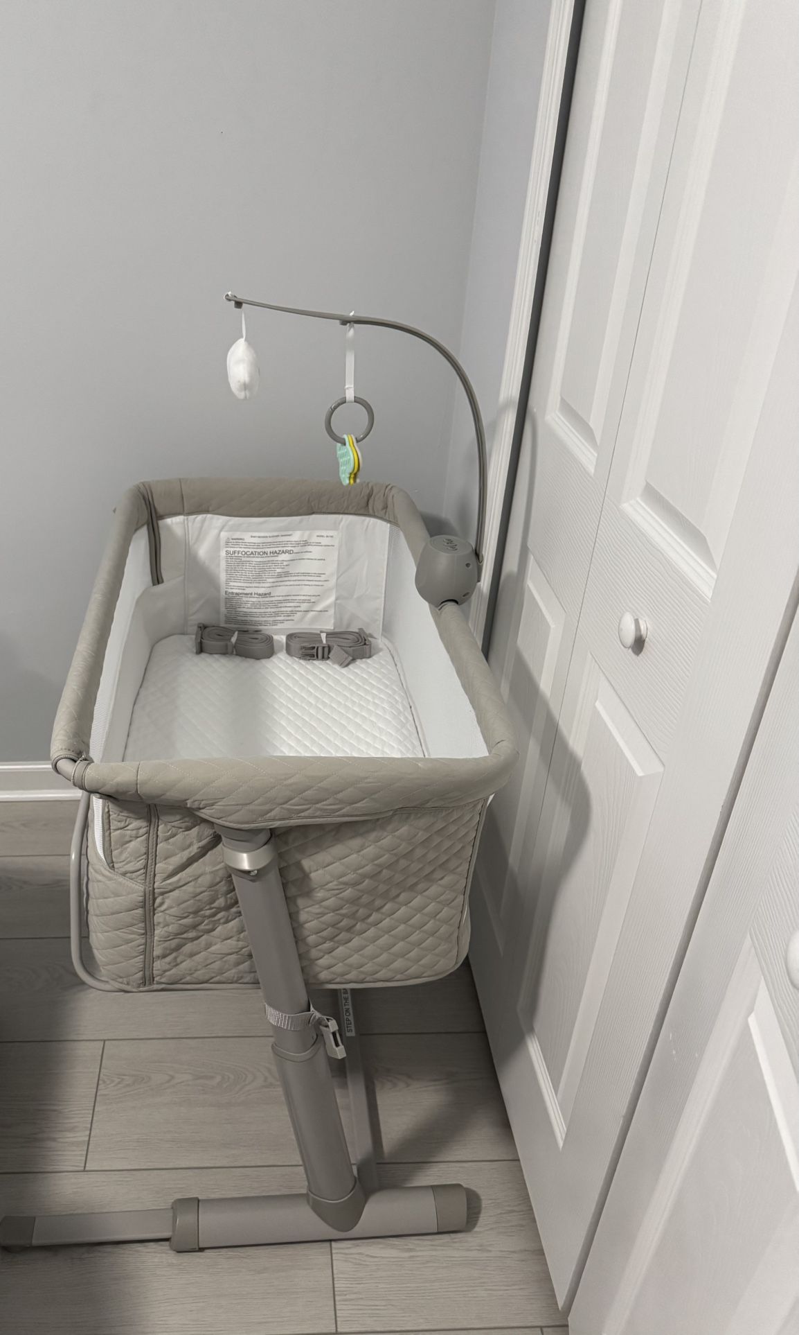 Selling our RONBEI Baby Bassinet/Bedside Sleeper, perfect for newborns and infants. Adjustable height, portable, and easy to move from room to room. Very clean and in excellent condition. Suitable for both baby boys and girls.