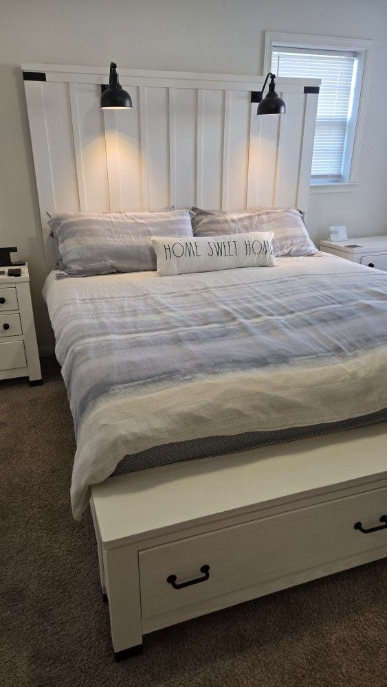 In great condition From Value City/American Signature Original price $4100 Natural Wood material Includes: King size bed (mattress not included) 2 night stands 1 dresser