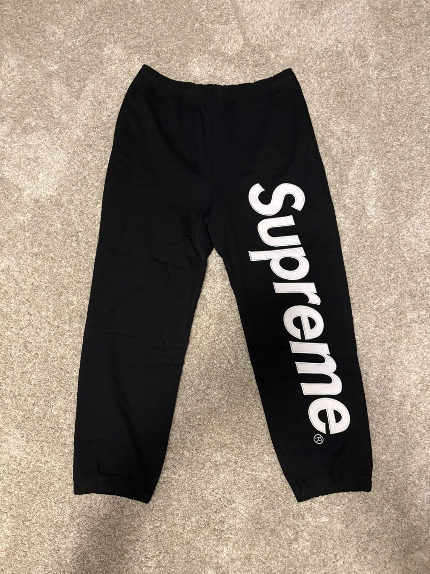 Supreme Satin Appliqué Sweatpants FW24 Black Size Medium