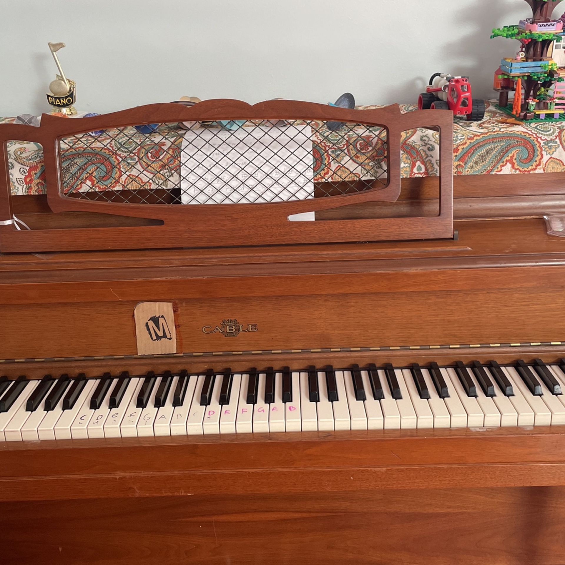 Cable upright piano , fully functional with bench . It’ll need two people to move out of the house.