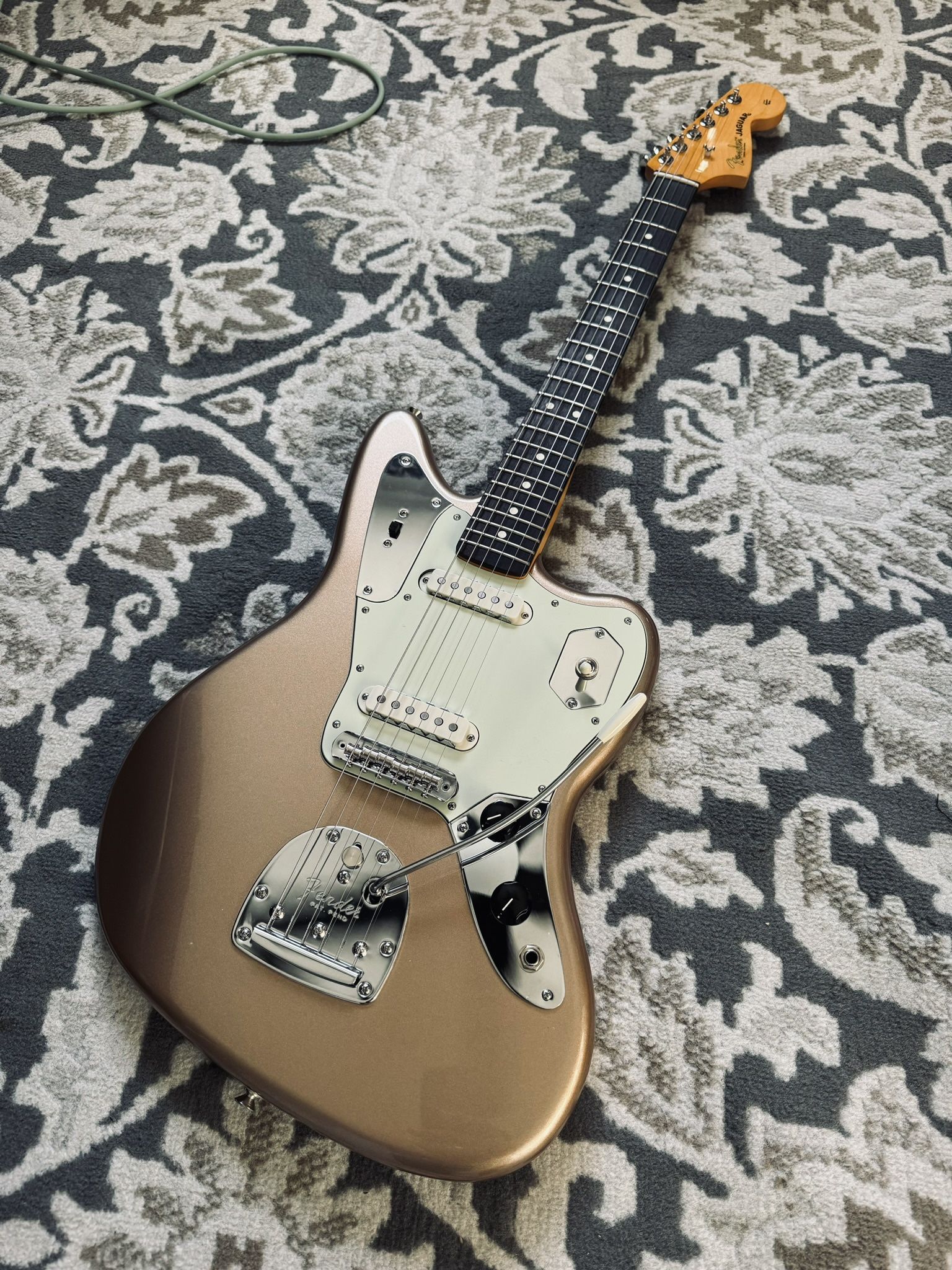 Up for sale is a brand new barely played Fender American pro Jaguar in Faded firemist gold Plays and sounds awesome Absolutely nothing wrong with guitar just wanting to trade or sell for an LP. Asking $1400 obo