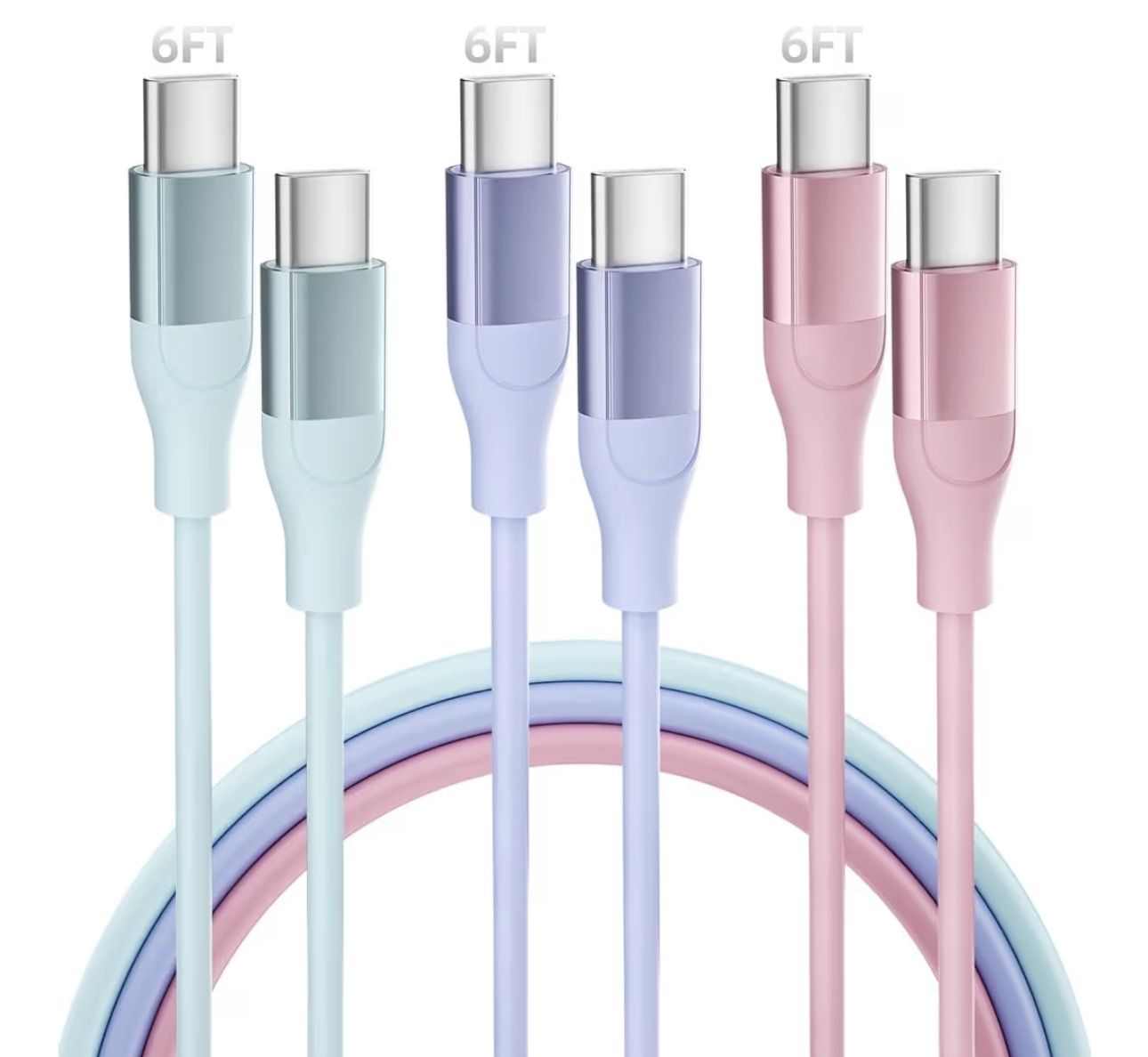 New USB C Cable, 3 Pack 6 FT USB C Charger Cable 60W Type C to USB C Cable Fast Charging Cord for iPhone 15 Pro Plus iPad MacBook Samsung Switch LG and More Overall Pick [What you get]: Our 3 pack 6ft 60W PD USB C to USB C fast charging cables [60W Fast Charging]: Our USB C to USB C cable supports up to 60W safe and fast charging. The sync data speed is up to 480Mbps. It efficiently charges your devices, such as laptops, smartphones, tablets, and other USB-C port devices, in a shorter amount of time compared to other cables [Safe and Stable]: Safe, tough durable. With advanced connectors, quality is guaranteed, preventing breakage. Regulates current, boosting battery and device life, protecting from unstable voltage [Sturdy and Amazing Quality]: High-quality TPE material makes our USB C cable durable and strong while remaining flexible and tangle-free. Prevents the connector from breaking easily, and it can withstand up to 30,000 bends [Broad Compatibility]: Our USB C cables are compatible with most type c port devices, for iPhone 15/15 Pro/15 Plus/15 Pro Max, Samsung Galaxy S23 S23+ S23 Ultra/ S22/S21 Ultra, Google Pixel XL/2/2XL/3/3XL/3a/4 XL, MacBook Pro/Air M2 13'', iPad Mini 6, iPad Pro 2022/2021/2020/2018, iPad Air 4/5, iPad 10.9, Google Chromebook etc