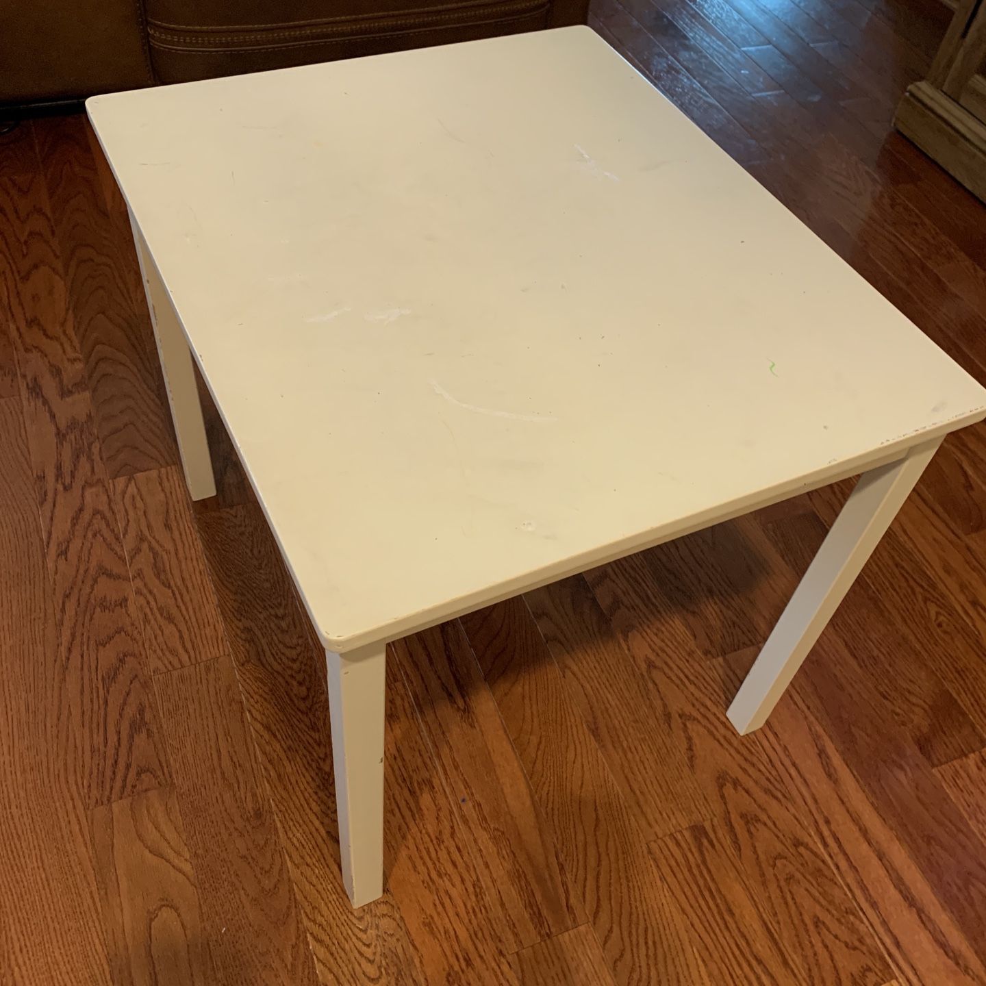 desk or Perfect table for arts and crafts, lunch time, homework, imaginative play with toys for play time Top is in used condition. -Perfect for plant table in your apartment. Sold separately; chair for sale red plastic chair.