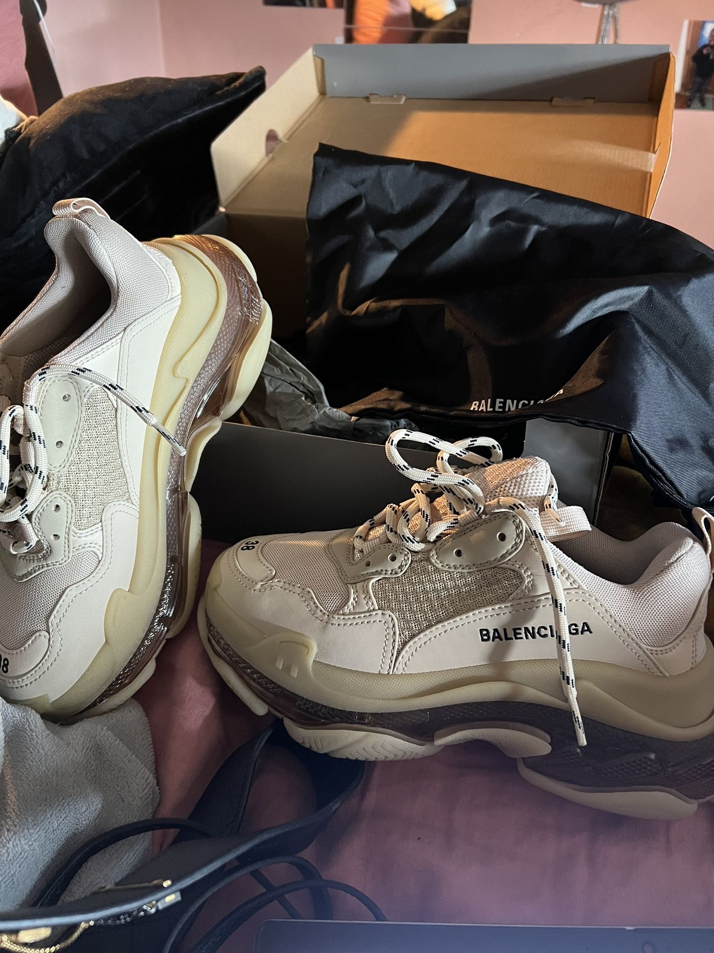 Balenciaga Nude Triple S Clear Sole Tennis Shoes