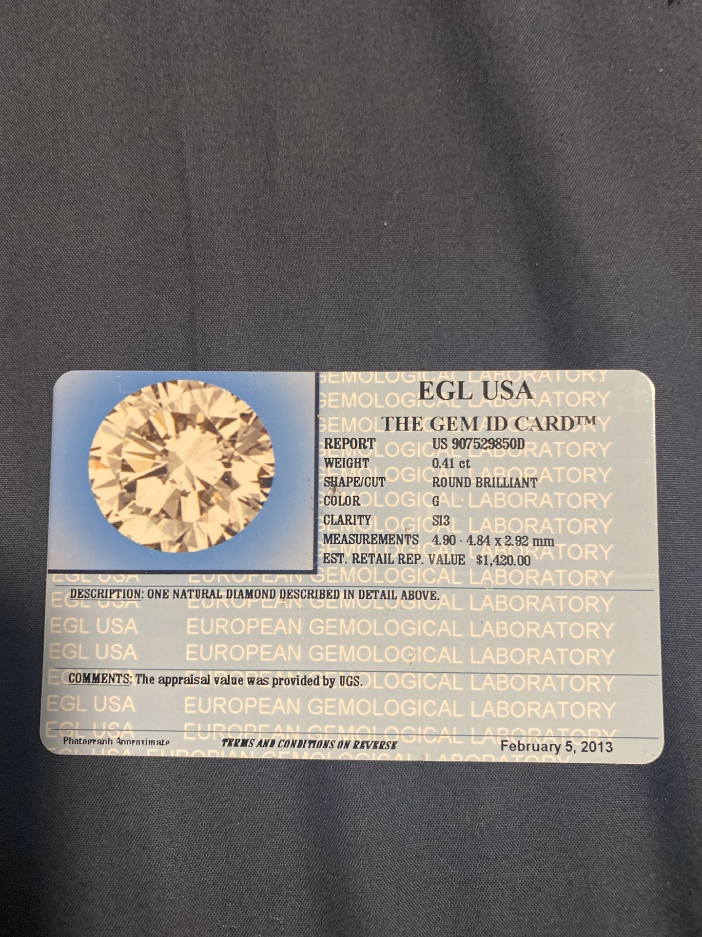 .41 ct lose diamond with 12 small .10 ct diamonds. Could make a ring or necklace out of them. .41 diamond retails for $1420.00 alone. All include for $600.00 obo