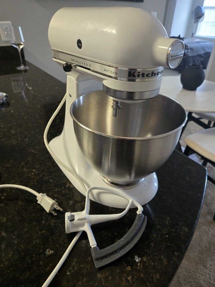 Mixer, bowl, and attachments included - whisk and wide open paddle