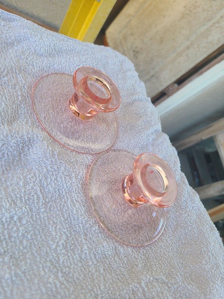 Depression glass blush pink candle holders