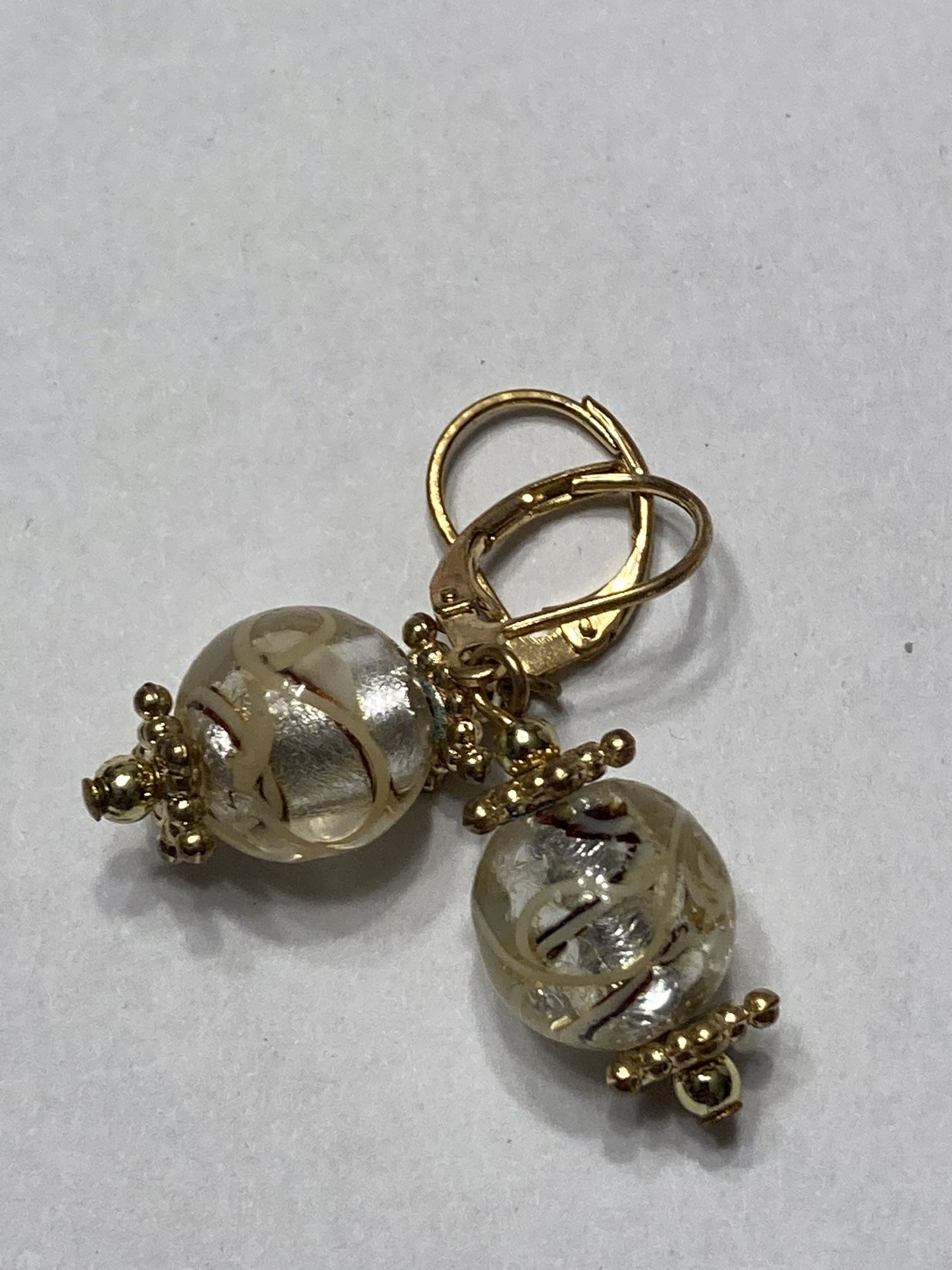 Fashion Jewelry Gold Lever Back With Black And Gold Swirl Bead And Gold Accents