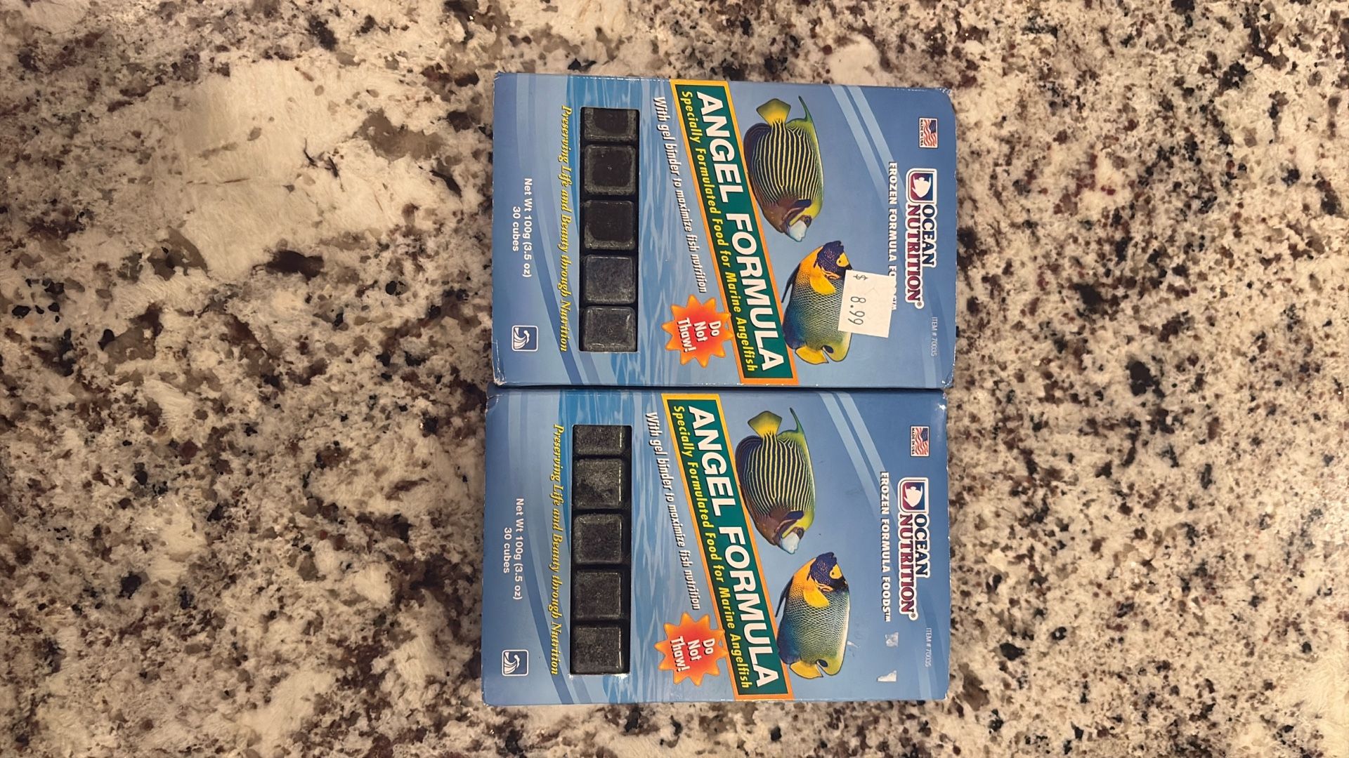Angel formula frozen fish food cubes, one full pack and the other pack half $11