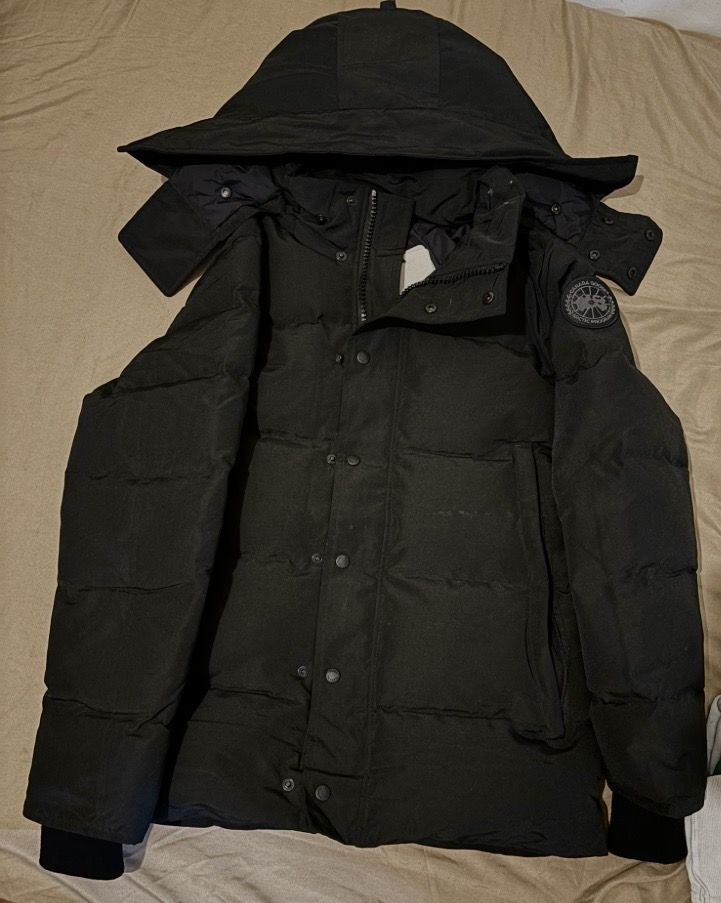 Brand New Size M β Authentic β Still has tags π·οΈ Comes With Hood which is removable Black Canada Goose Jacket Wyndham Parka Black Label