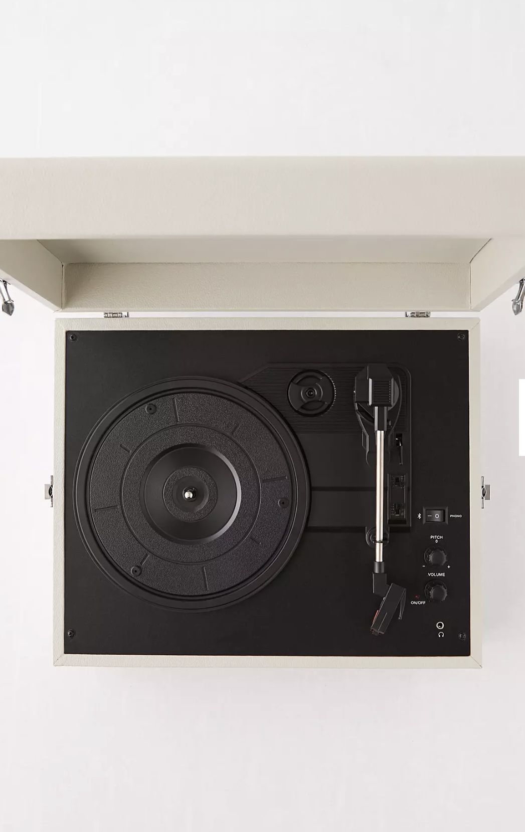 listen to your favorite vinyl records on wireless external speakers. If you're not in the mood to spin some vinyl, you can listen to music with the built-in, full-range stereo speakers. Also kept the vintage-inspired suitcase design and all the classic features you know and love; three speeds, adjustable pitch control, aux-in, and a cueing lever.