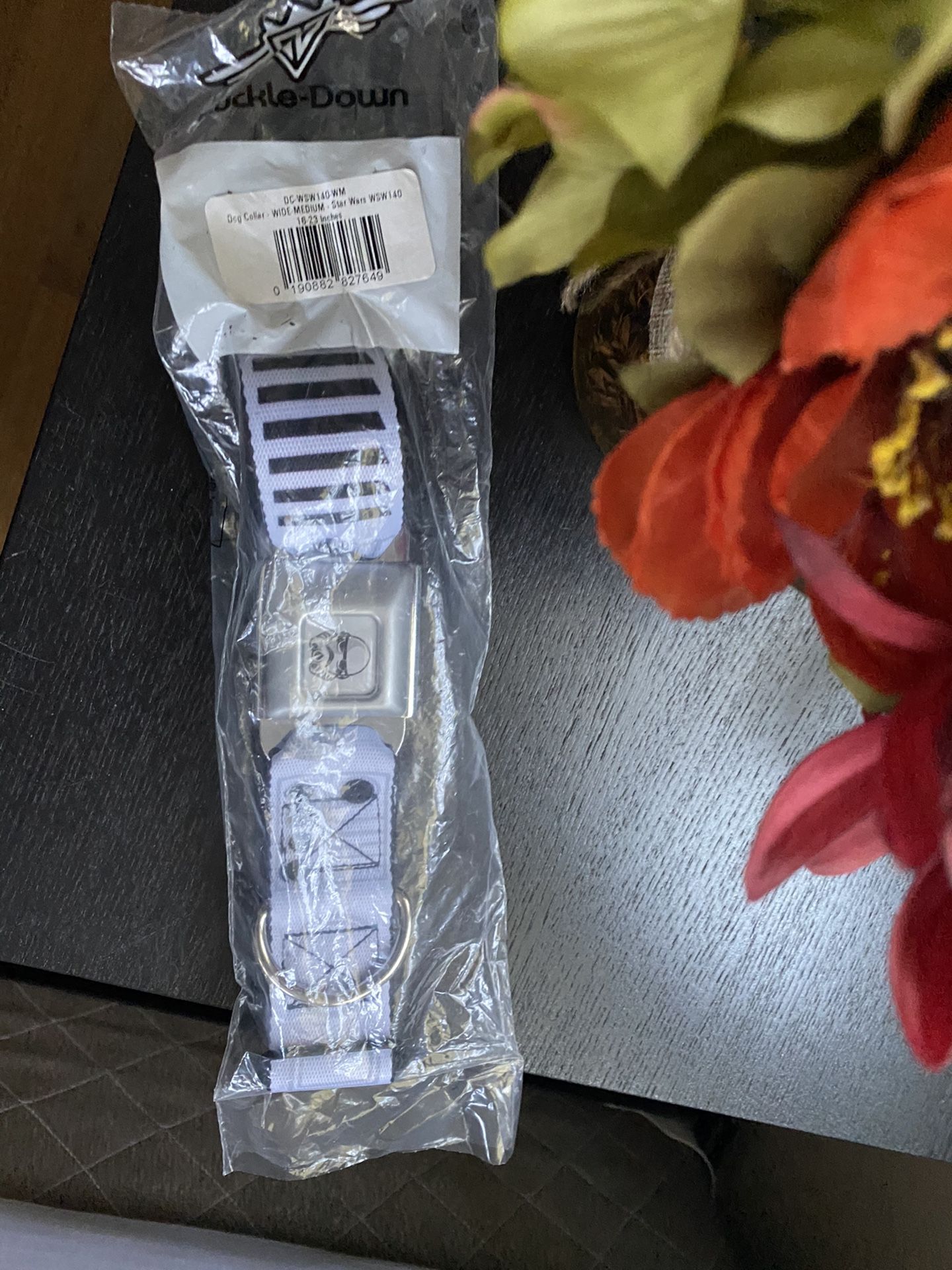 Brand New. Wrong size for my dog. This is good for larger dogs with neck sizes 16-23 inches. It is 1.5 inches wide. It also helps if you like Star Wars :)