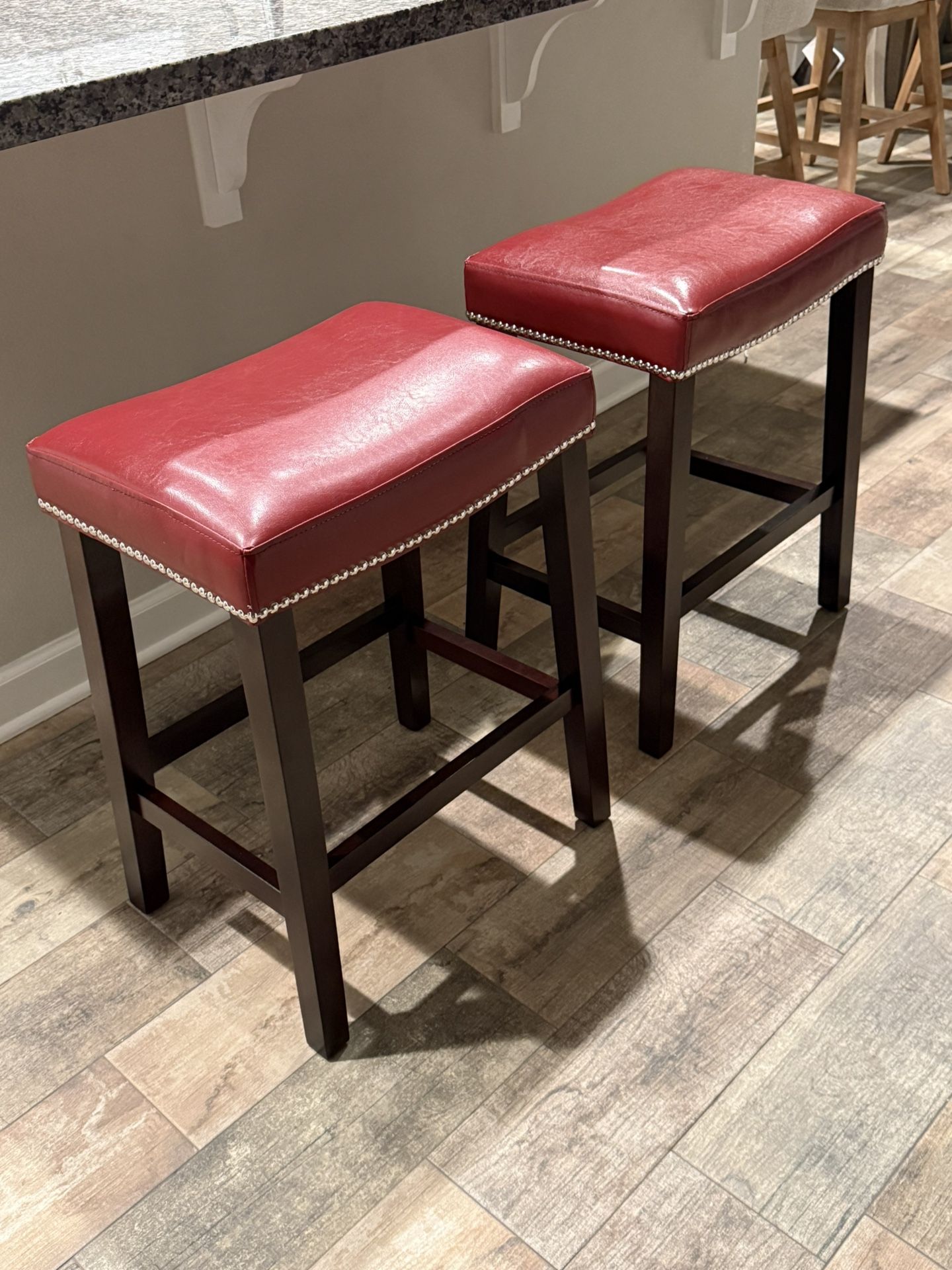 New Evalina Upholstered Counter Stool (Set of 2) Saddle Style Red 25” x 14” x 18.5”