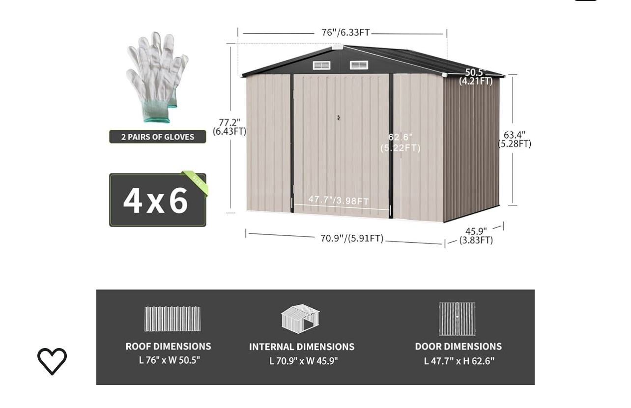 New In Box, 4x6’ Metal Storage Shed