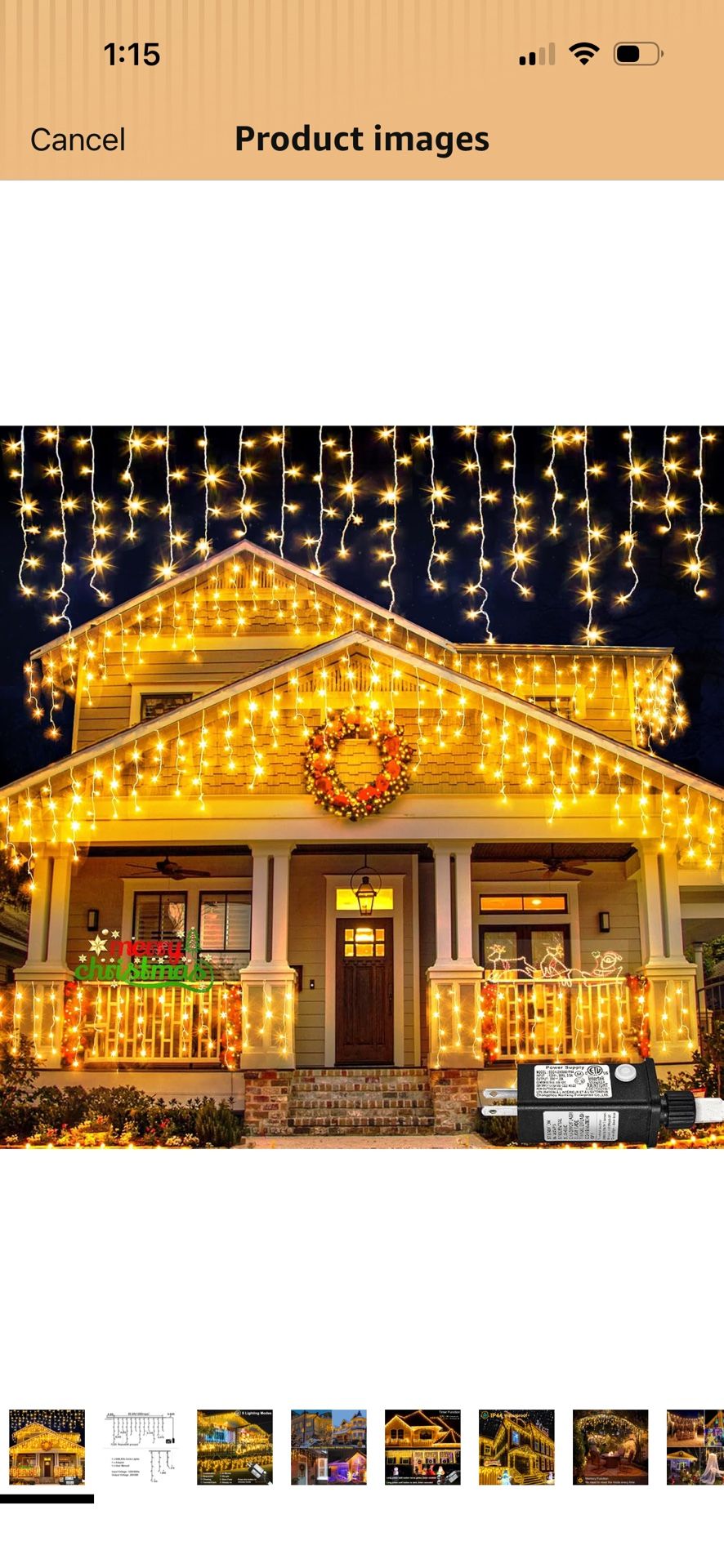 New in the box -#7 See below for more details: More features Upgraded 8 Modes Icicle Lights for Outside: The Christmas Lights have 8 selections of light pattern: 1.Combination https://offerup.co/faYXKzQFnY?$deeplink_path=/redirect/ Waves 3.Sequential 4.Slo-Glo 5.Chasing/Flash 6.Slow Fade 7.Twinkle/Flash 8.Steady On. Different lighting effects are controlled by the button on the plug. These beautiful and vibrant outdoor Christmas lights will bring you a lot of festive atmosphere. Low Voltage & UL Certification: The output voltage of the Christmas lights outdoor is 29V, the power of adapter is 6W with UL certified, energy saving and safe to use. The led Christmas lights outdoor will not overheat even after working for a long time and safe to touch. Connectable outdoor led Christmas lights: 640 pieces LED bulbs 66ft light length, each twinkle lights has end-to-end connection that allows up to 3 light strings connected together to meet your different decor needs. 9.84ft lead wire meant no need an extension cord, perfect icicle Christmas lights outdoor for outdoor decoration. Memory and Timer Function: The Christmas outdoor lights could recover from the previous setting mode when you restart, no need to reset the mode every time. Press and hold the button on the adapter for 3 seconds until the green light on, then the timer function start, 6 hours on 18 hours off. This smart and convenient outdoor Christmas lights for house is the best choice for your holiday decoration. Waterproof: The warm white Christmas lights is perfect for outdoor using, including heavy rain and snow. Sealed LED beads, thick gauge wire and coating all are IP44 waterproof, they make the outside Christmas lights for outside durable and worked great through the season. But please kindly note that the plug is not waterproof, please do some protection or keep them away from water.