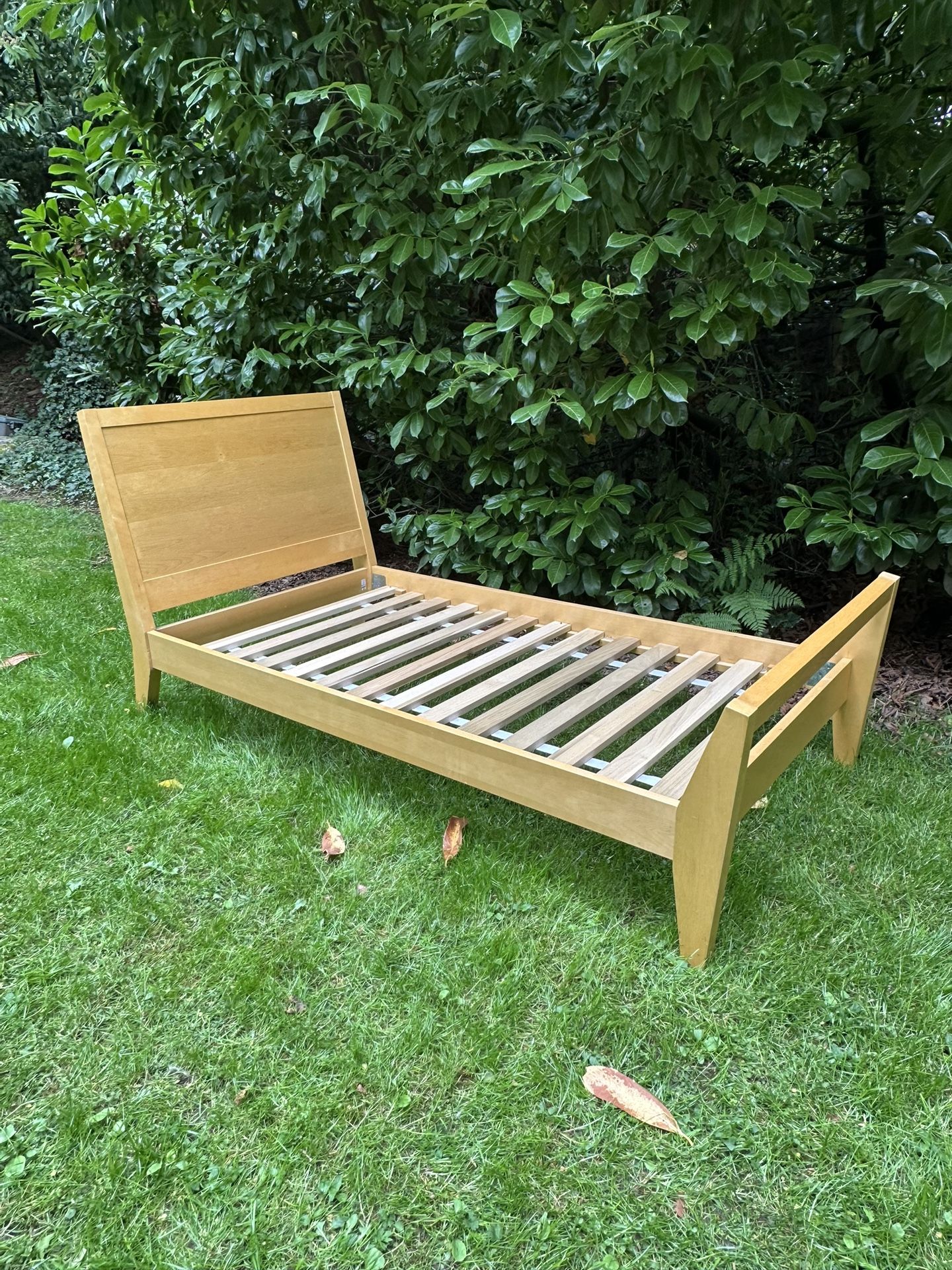 Beautiful Modern Twin Solid Oak Wood bed frame bought from The Land Of Nod / Crate and Barrel in the UVillage. Already broken down for easy transport. Pick up in Ballard. Retailed for $1350 Asking $400