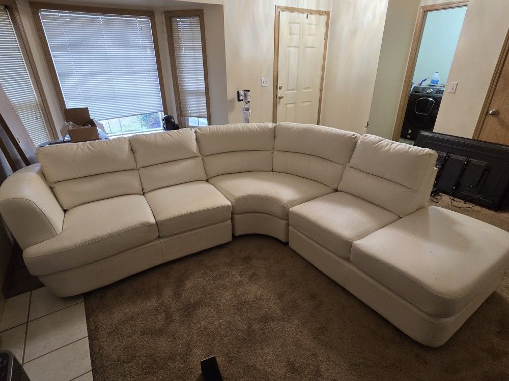 Coaster Fine Furniture White Pleather Curved 3 Section Couch