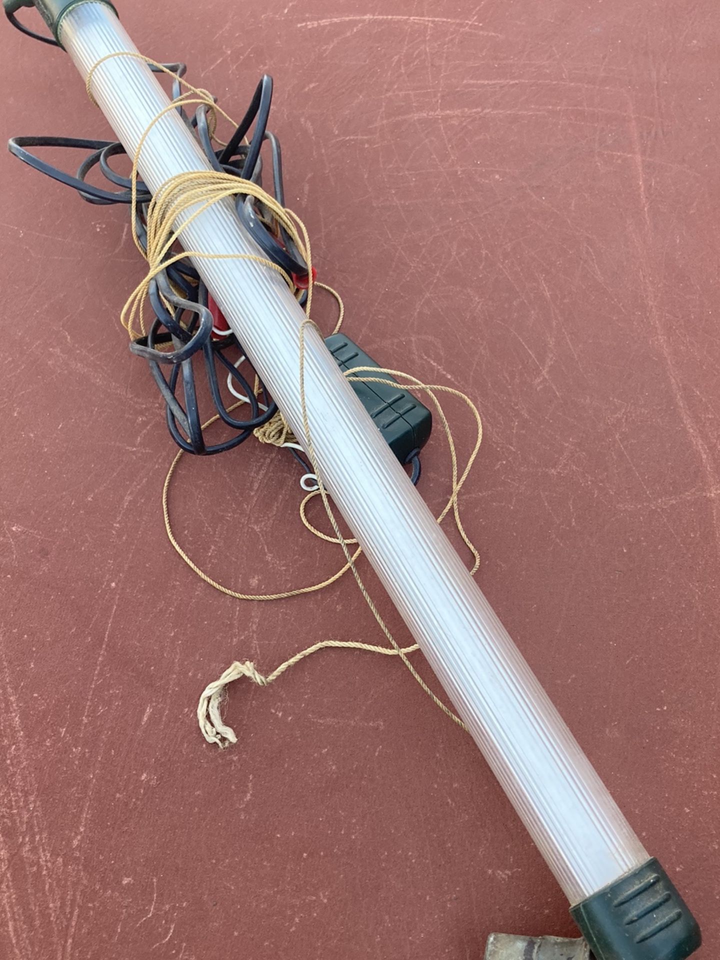 Brinksmanship 20”fishing light. 12 volt 12 watt. Clamps to boat battery. Has anchor weight and clacked with retrieving lines.