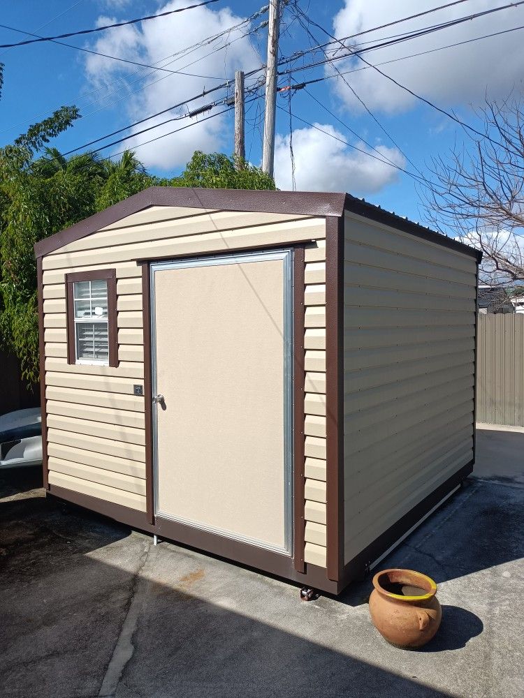 If it's up it's available. like new. 10x10 Steel shed (not wood). Big door. Hurricane proof. Has been insulated and electrical has been ran. Every wall has an outlet. Located in Cutler Bay.