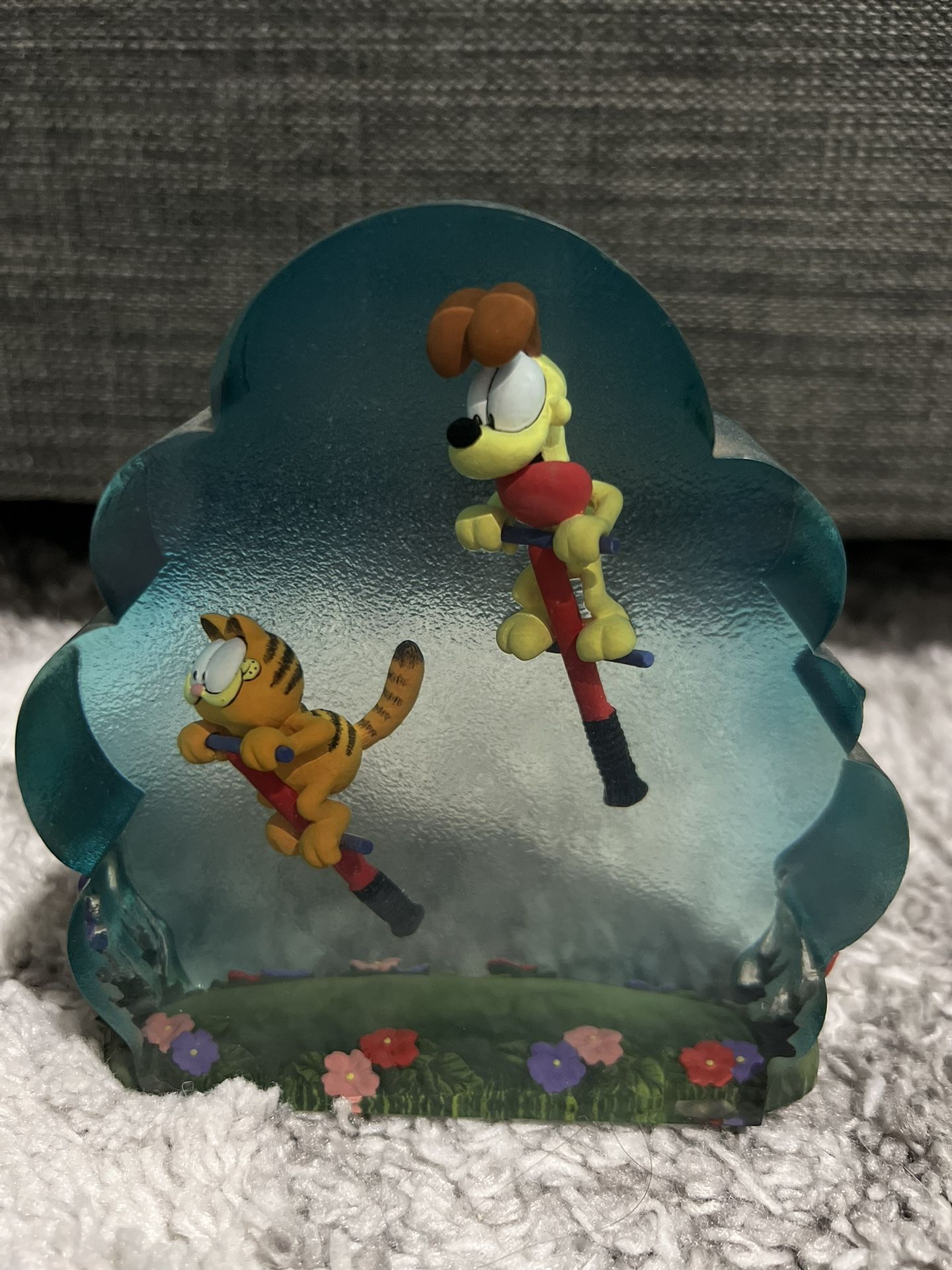 Garfield Resin Paperweight /Garfield & Odie on Pogo Sticks #2347