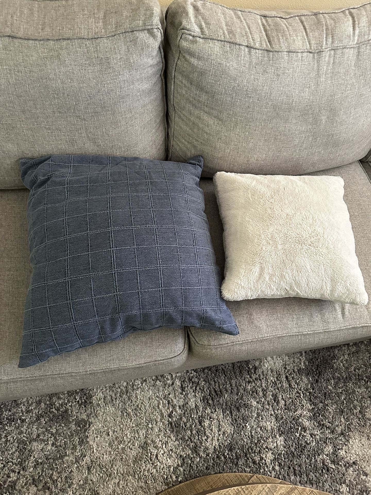 Change up your living space with some updated pillows! 2 24”x24” blue pillows and 2 20x20 white pillows. Excellent condition, pet and smoke free house.