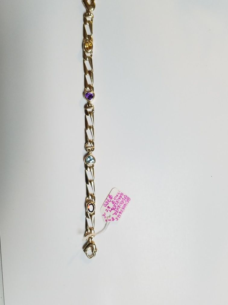 14k Yellow Gold Heart Designer Bracelet Made In Italy 7"in Length And 8mm Size