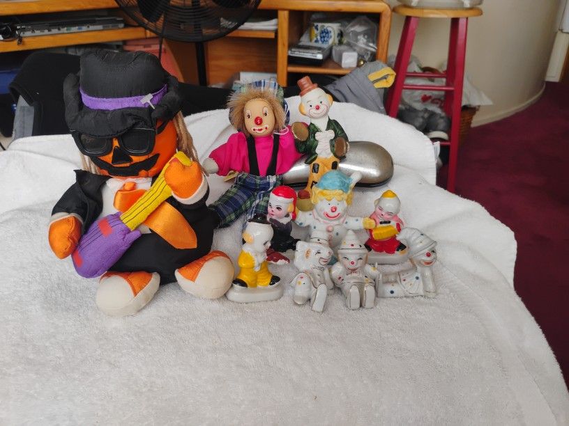 assorted clown figurines