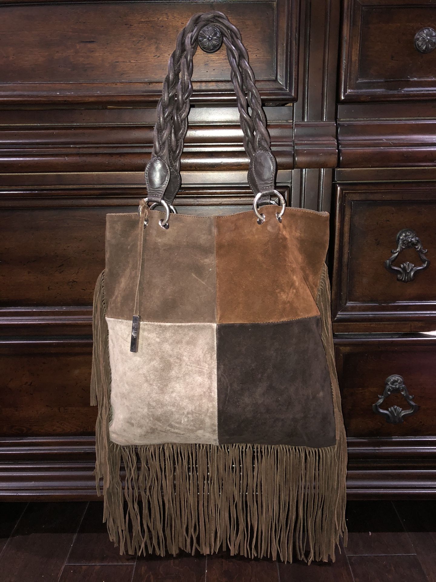 Large Iatian Suede Tote With Leather Straps (fringe)