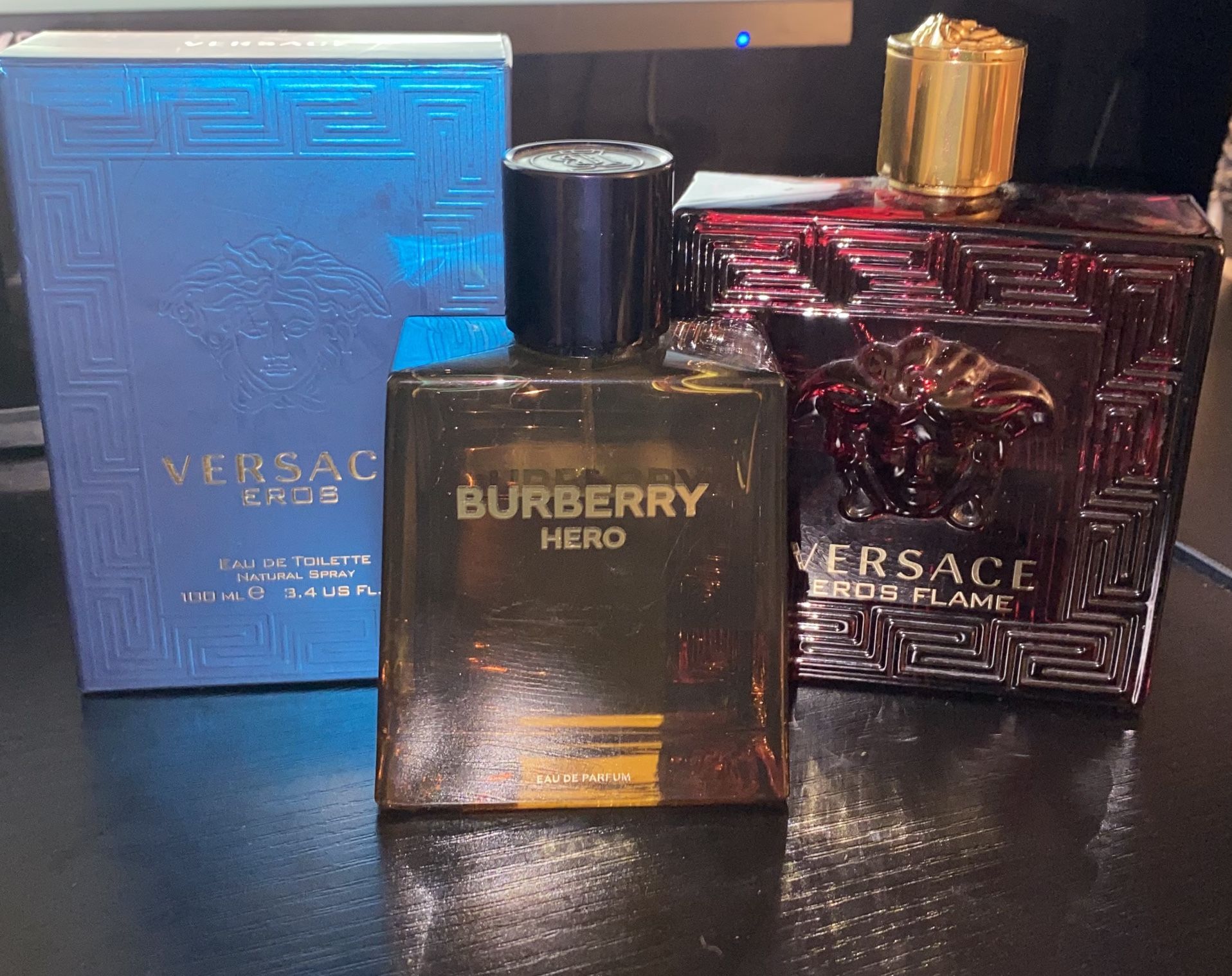 Burberry HERO, Versace EROS Toilette, and Versace EROS flame