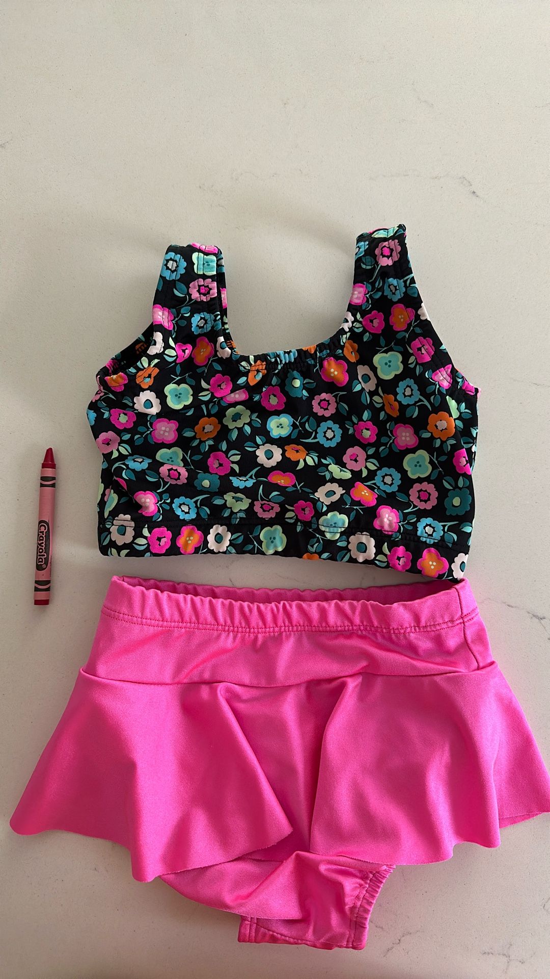 Girls dance set size, extra small (Fit my petite daughter when she was 4 years old) Floral top, hot pink skirt bottoms $15 for the set Greenfield and Elliot
