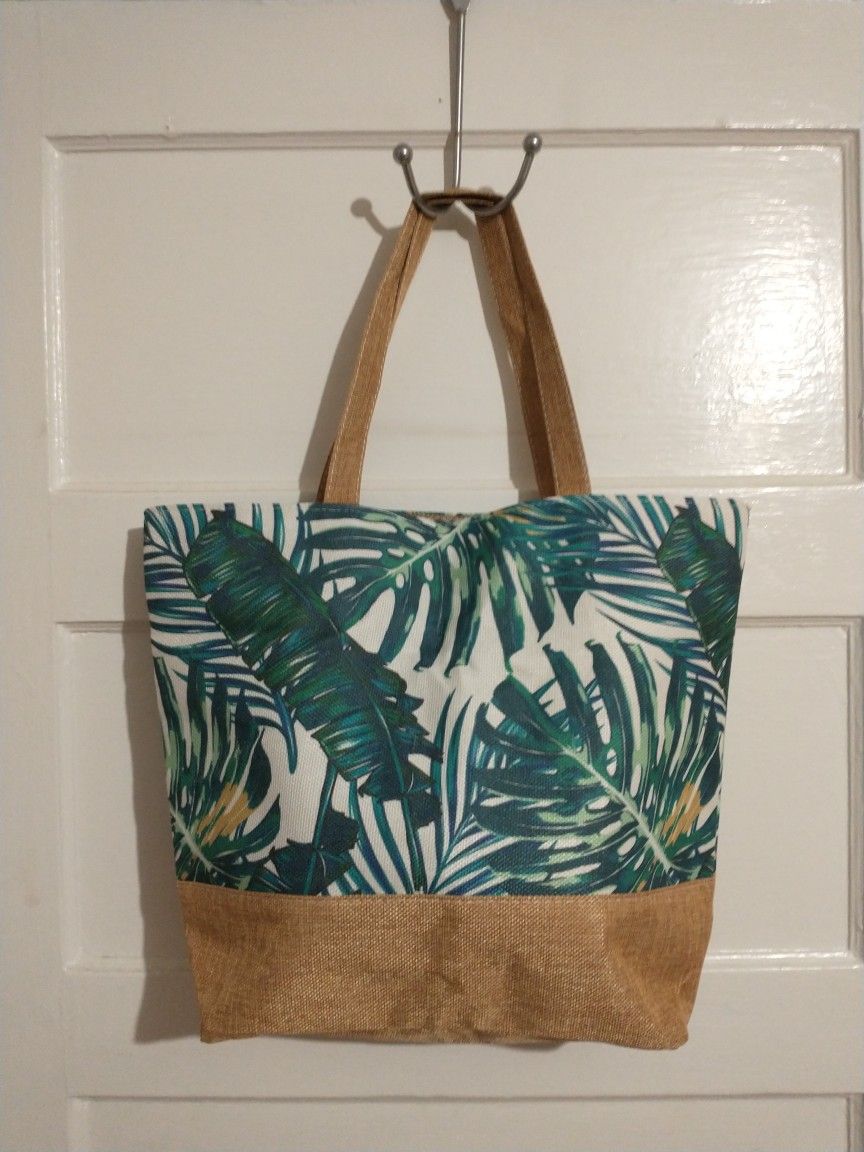 Beautiful brand new never used banana leaf canvas tote. 13 inches deep, 17 inches wide. Zipper closure. I can meet you at Ingles in Pickens.