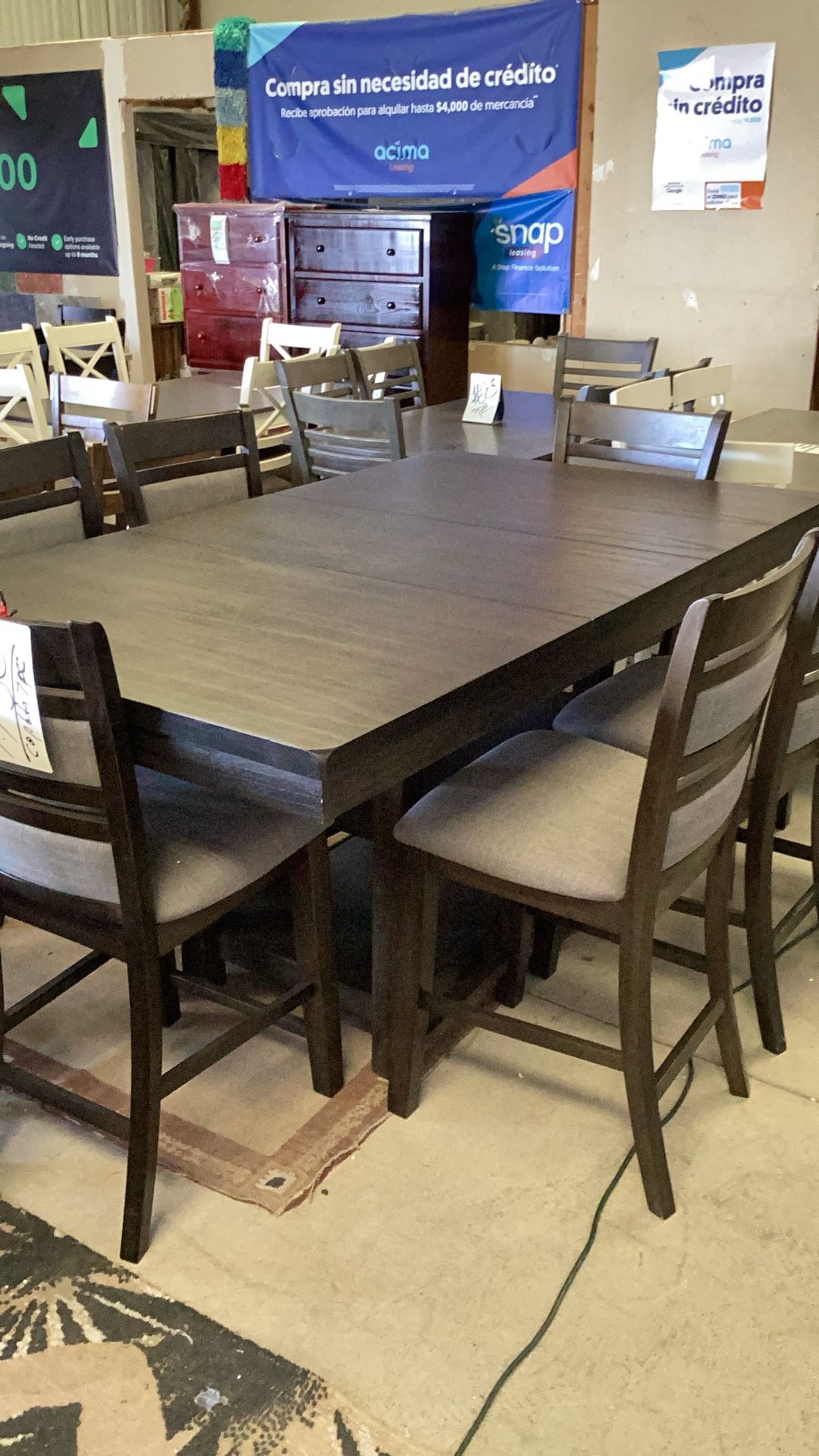 Beautiful dining table Connor high Beautiful color, dark gray, ready for the holidays free deliver Hablo Español Available open every day Miranda furniture warehouse Solid wood table, dark gray Best seller