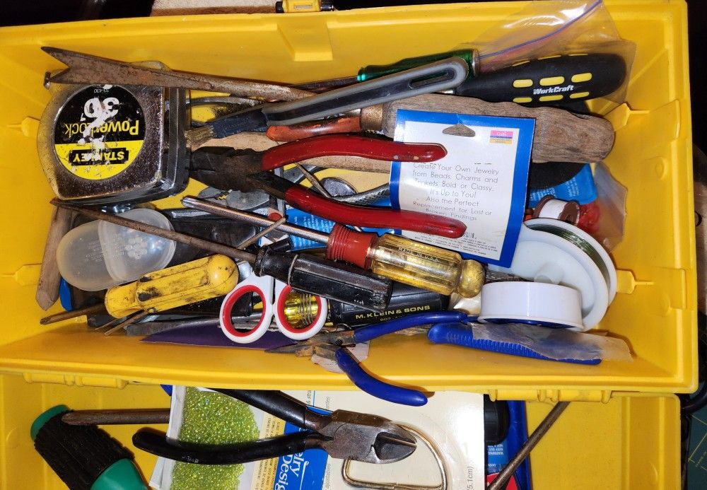 MASTER MECHANIC PLASTICK TOOL BOX WITH OLD TOOLS NO HOLDS