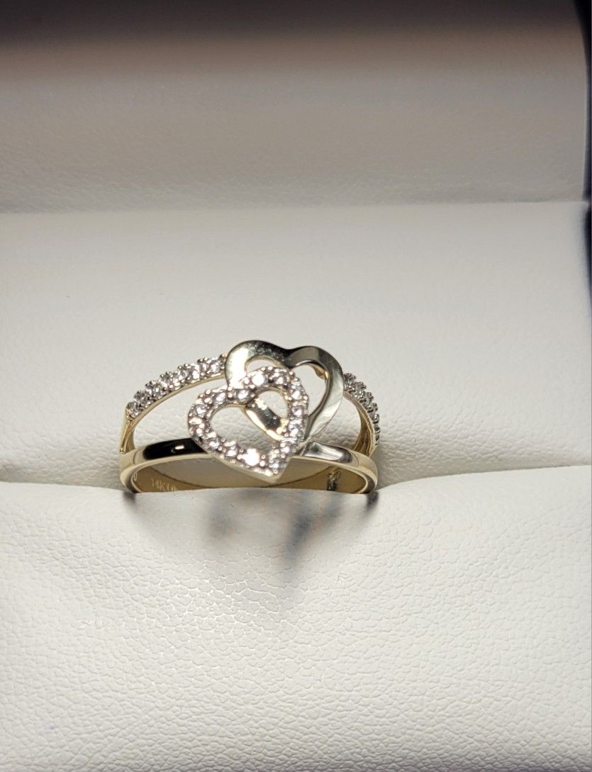 Ring with two hearts 14 k gold Size 7.5